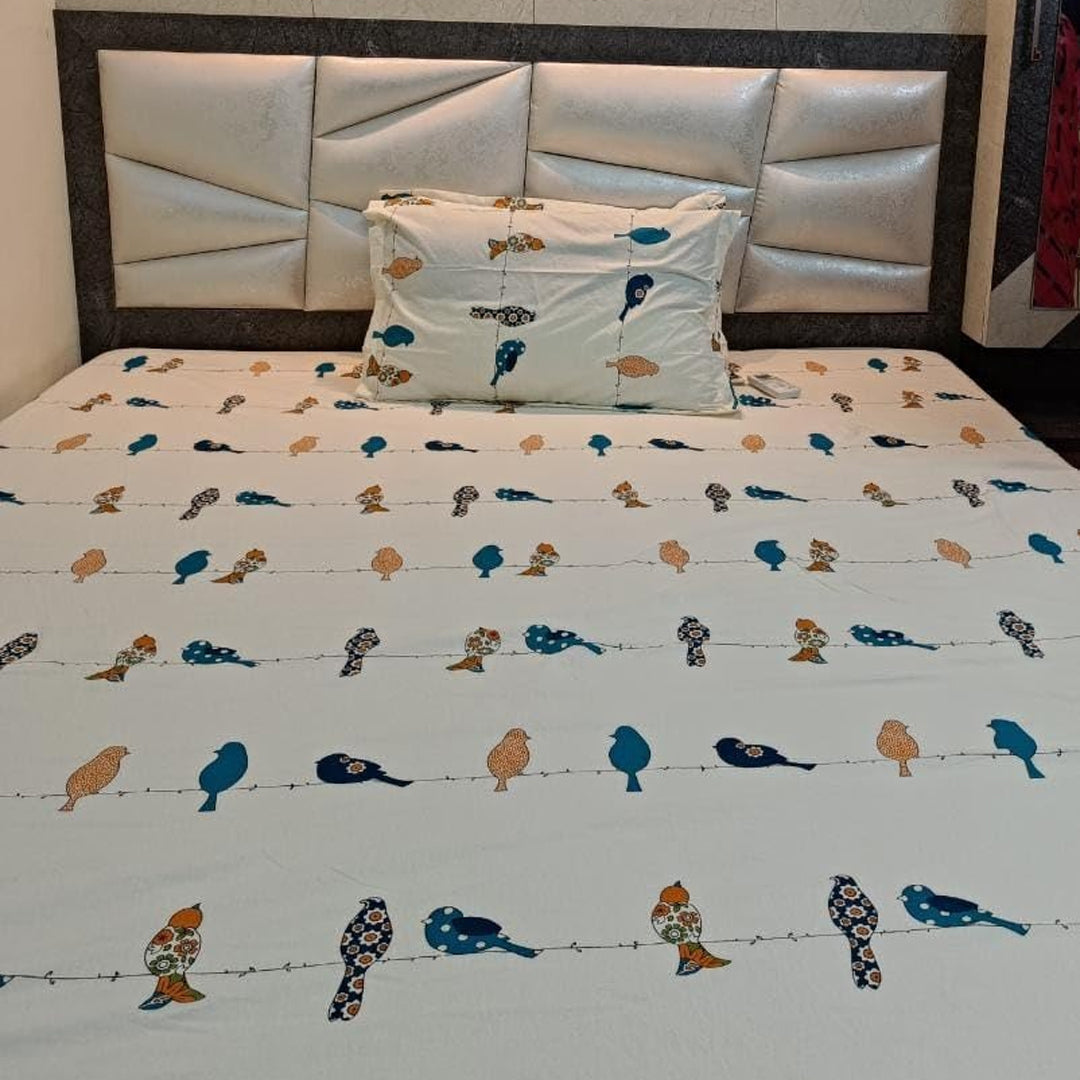 Bedsheet looks very pretty as its print is unique and cute. Fabric is soft and breathable. Color is not pure white, a little cream shade but it gets whiter after every wash. No color bleeding, you can wash with other clothes. Go for it