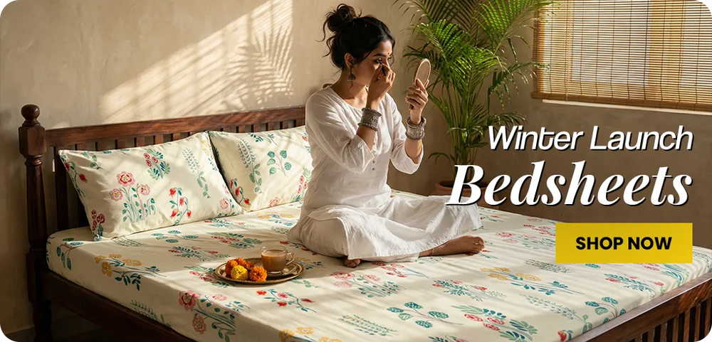 Serene 200 TC 100% Cotton Bedsheet with Pillow Covers - Malhaar Mustard Yellow