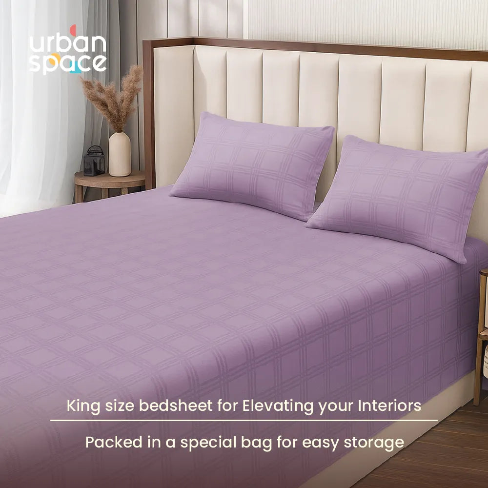 300 TC Super Soft King Bedsheet, Self Woven Checks Design - Soft Mauve Checks