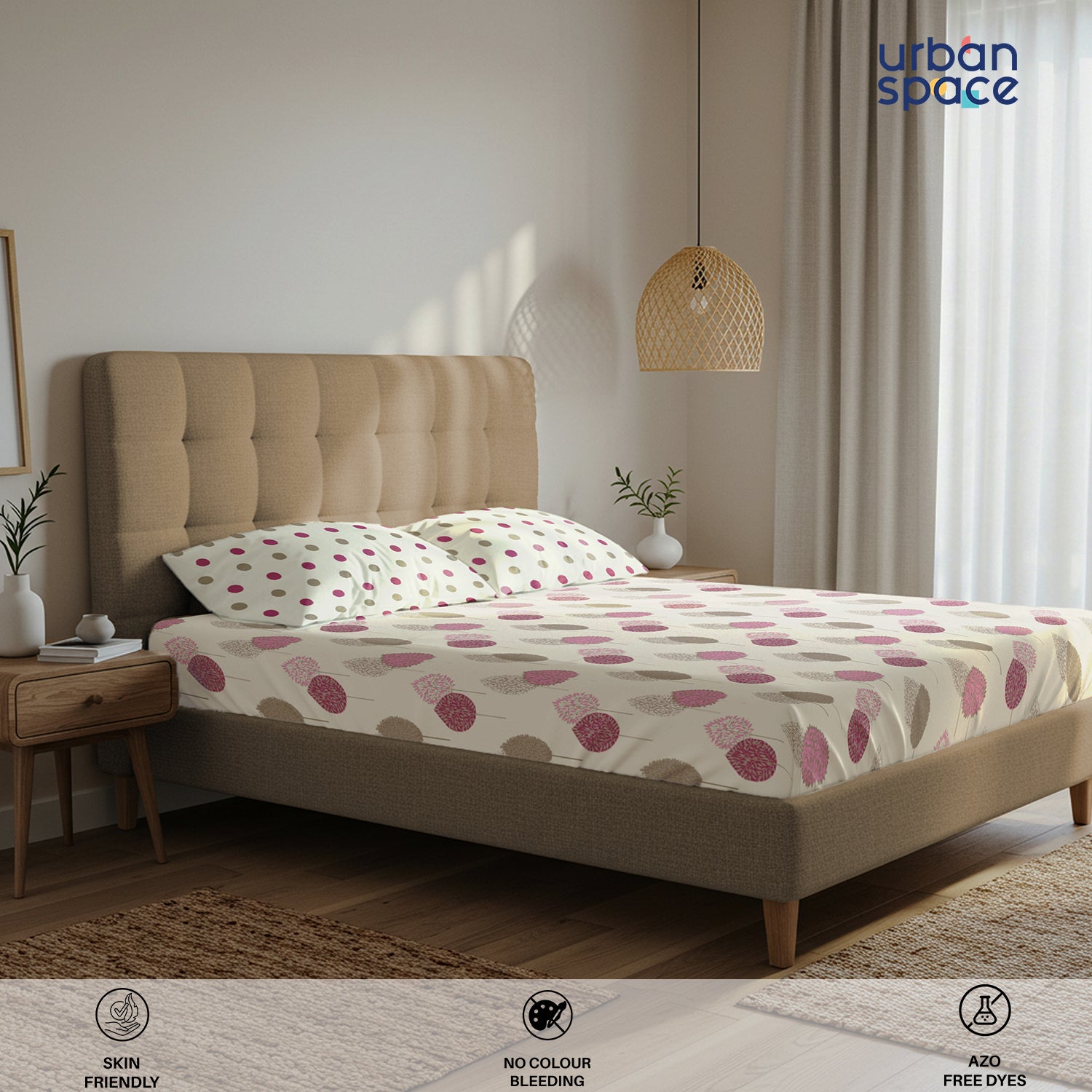 - Fabric & Quality: Made from 100% fine and breathable cotton with a 200 thread count, this bedsheet offers a soft and smooth hand feel for all-season comfort. Crafted using AZO-free colours for safe everyday use and finished with a neat four-sided hem for improved durability and shape retention.