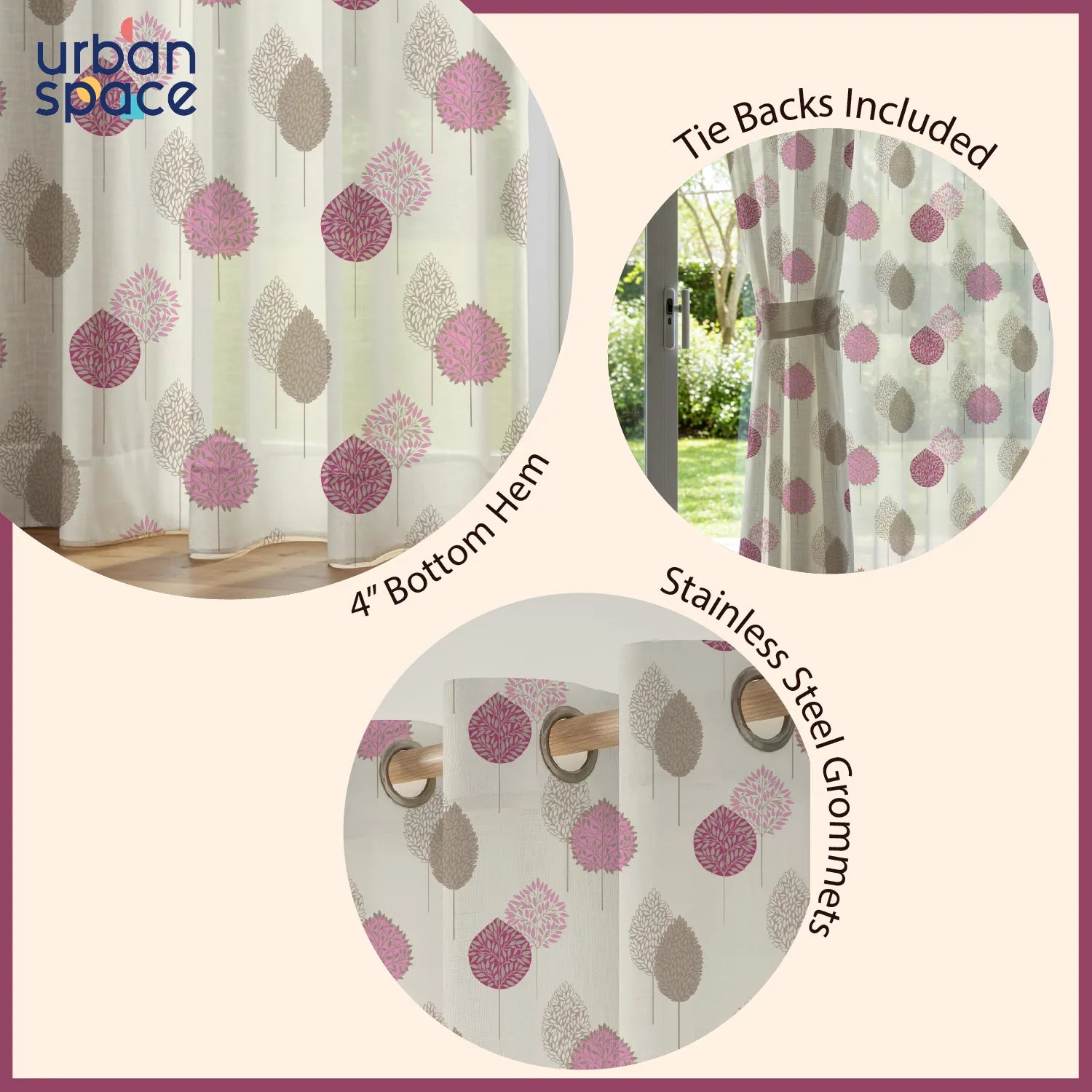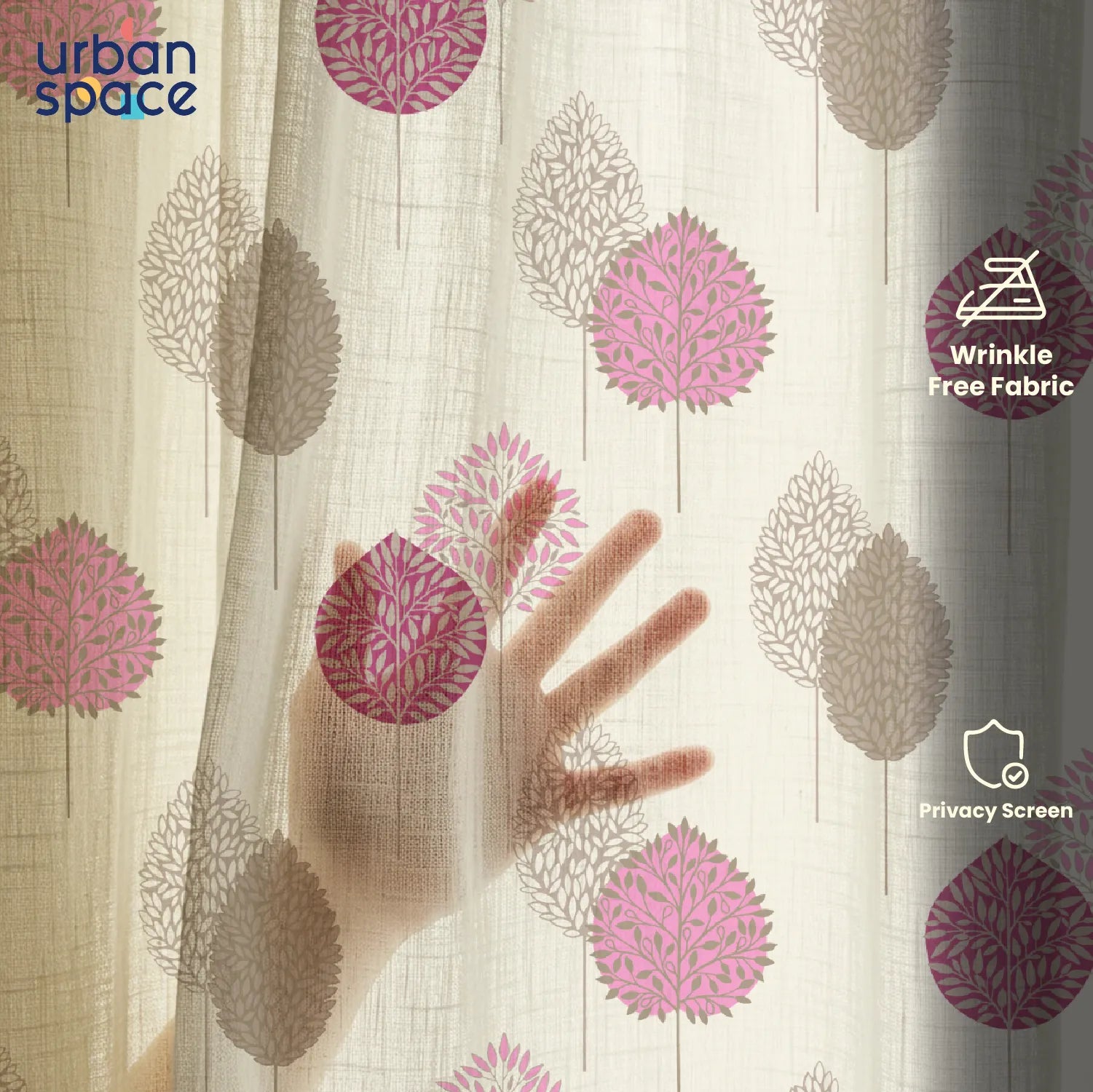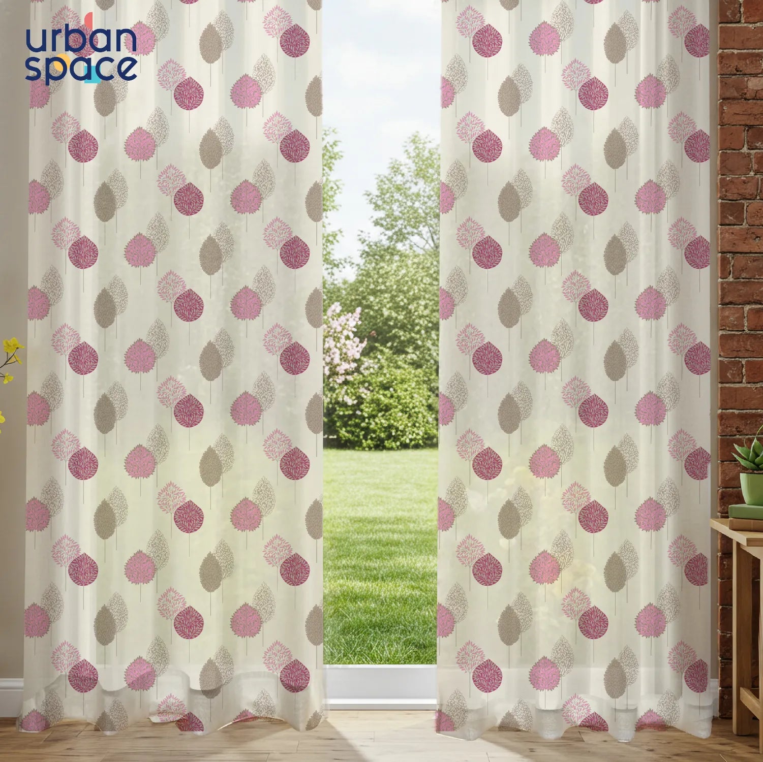 Sheer Curtains, Linen Textured & Digital Printed, Pack of 2 - Drops Pink