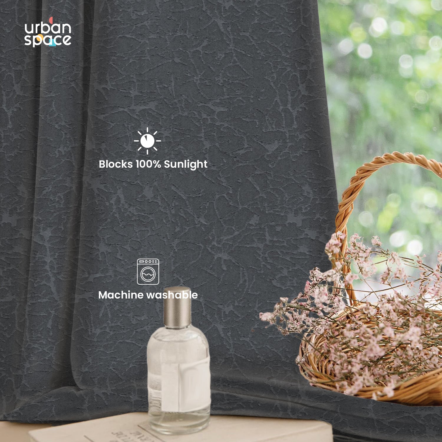 100% Blackout Curtains, 3D embossed door & window curtains, Pack of 2 - Earth Grey