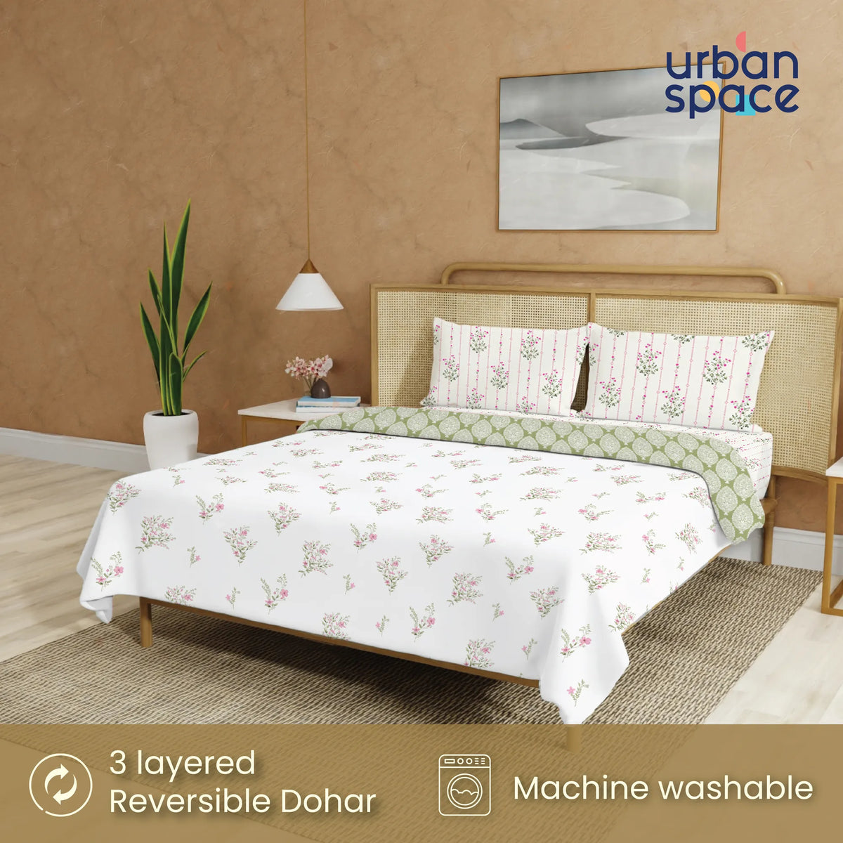 Bedding Sets by Urban Space gives you a unique choice of coordinating your room decor in the designs of your liking, with bedsheet and dohar or blanket complimenting each other. Both the products are of 100% cotton with dohar being reversible giving a nice contrast touch to the room decor.