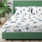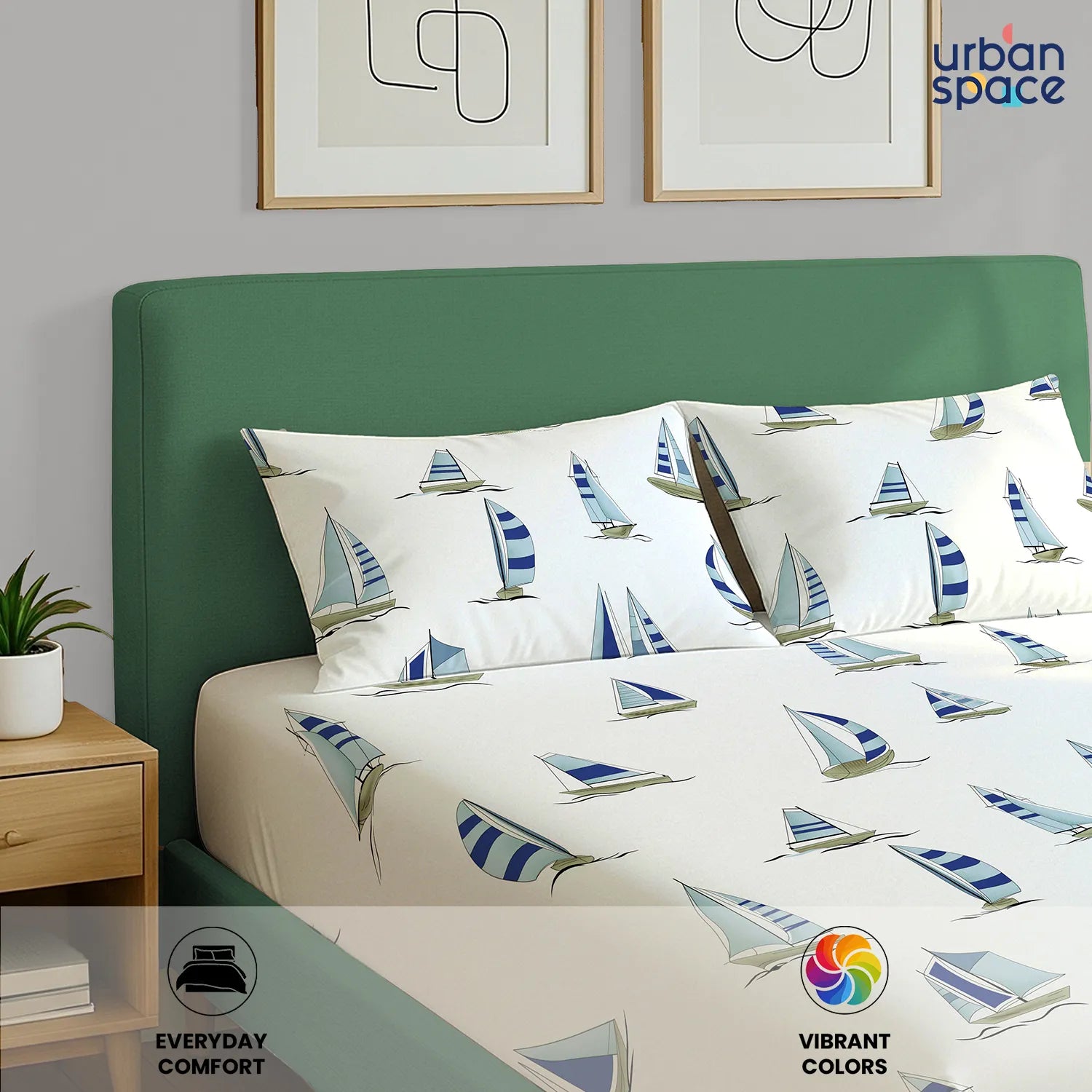 Divine - 100% Cotton Double Bedsheet with 2 Pillow Covers - Ocean Boats Blue