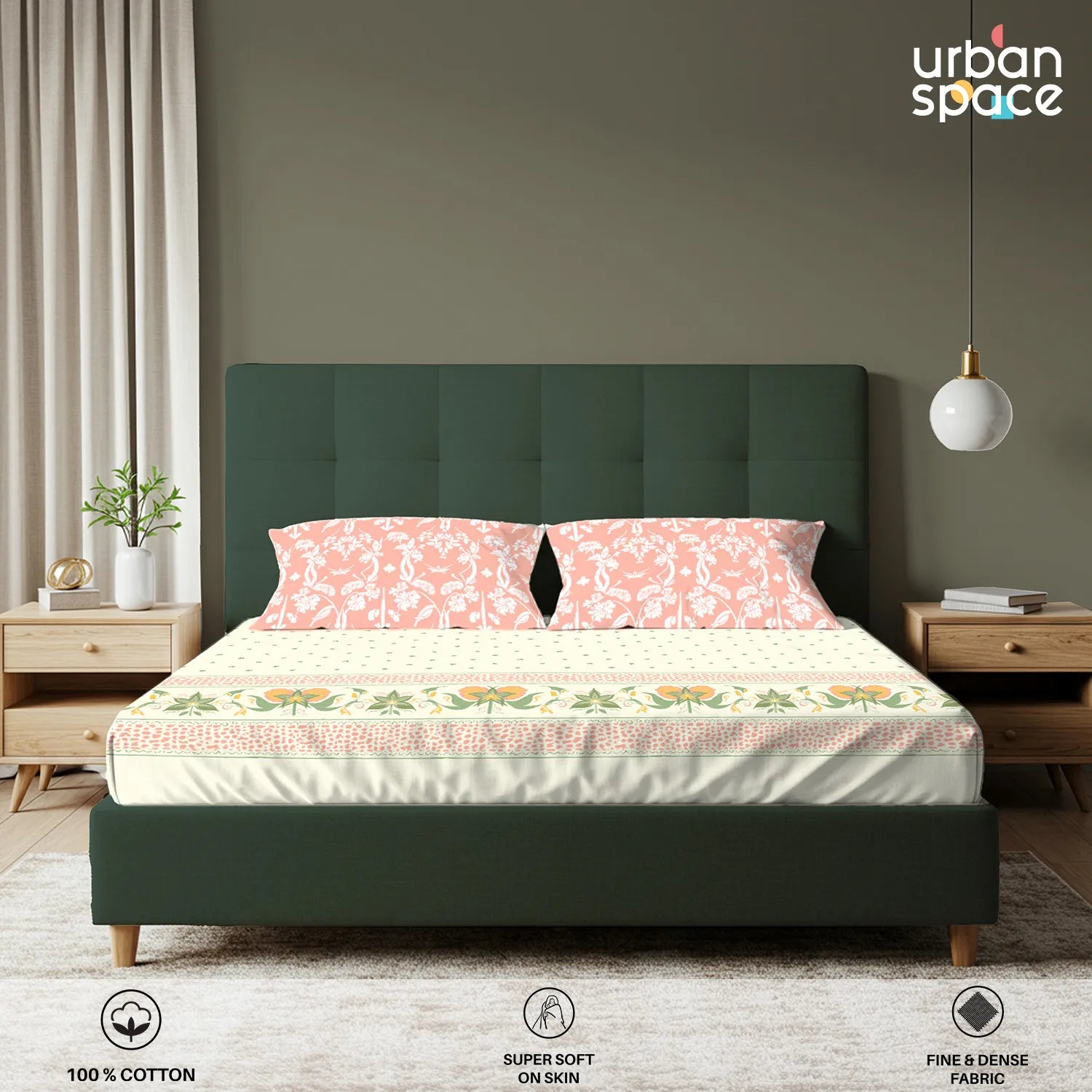 - Fabric & Quality: Made from 100% fine and breathable cotton with a 200 thread count, this bedsheet offers a soft and smooth hand feel for all-season comfort. Crafted using AZO-free colours for safe everyday use and finished with a neat four-sided hem for improved durability and shape retention.