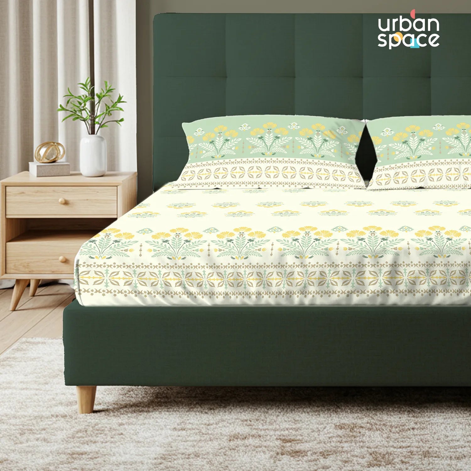 Serene 200 TC 100% Cotton Bedsheet with Pillow Covers - Malhaar Sage Green