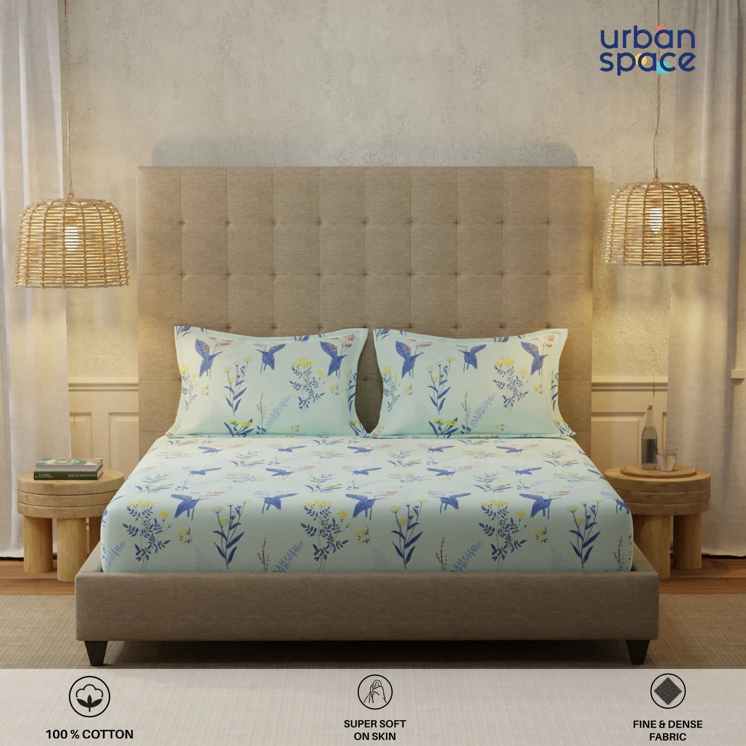 200 TC 100% Cotton Bedsheet Set in Gift Box - Whisper Mint Blue