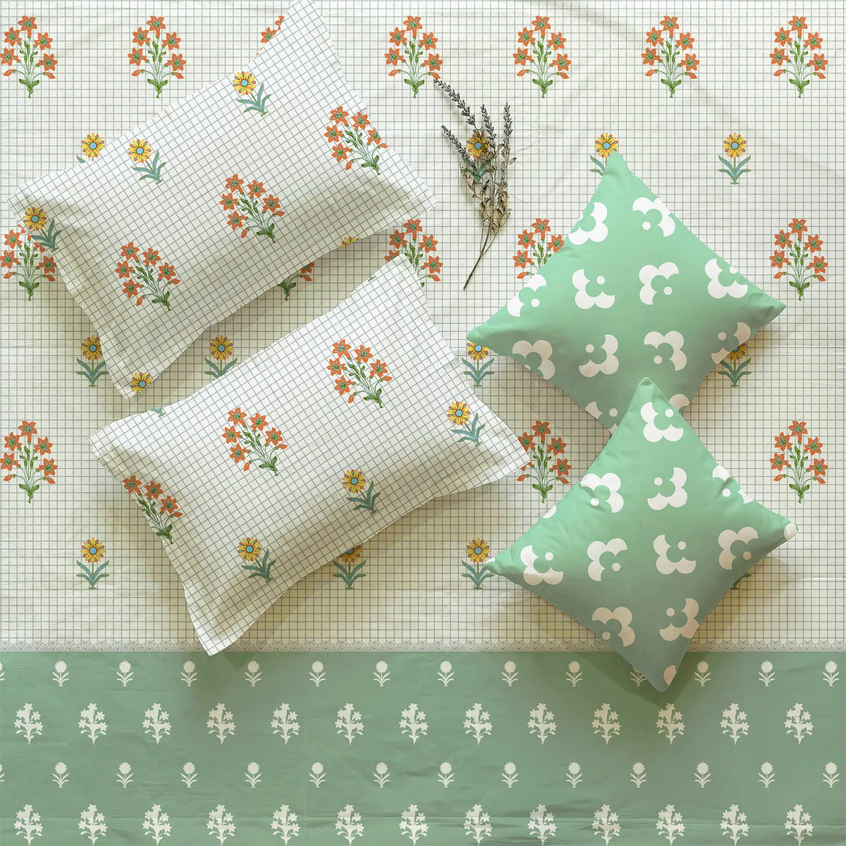 | Pack Contains | 1 Double Bedsheet + Pillow Covers and 2 Cushion Covers |