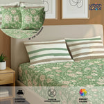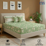 5 PC Cotton Bedsheet Set with 2 Pillow + 2 Cushion Covers - Viola Sage Green