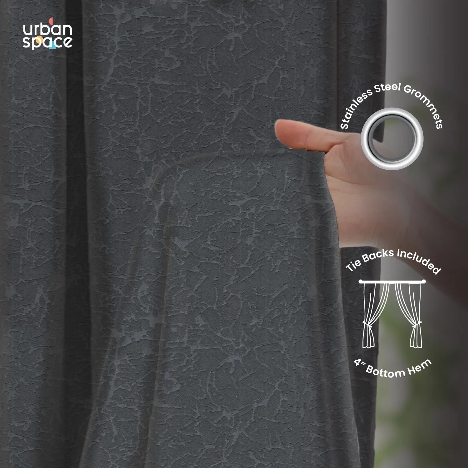 100% Blackout Curtains, 3D embossed door & window curtains, Pack of 2 - Earth Grey