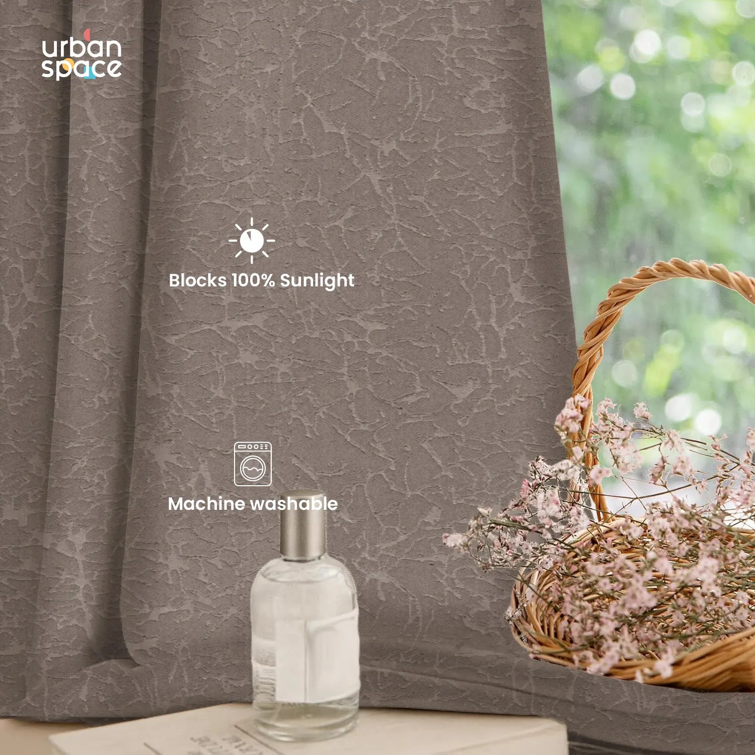100% Blackout Curtains, 3D embossed door & window curtains, Pack of 2 - Earth Brown