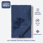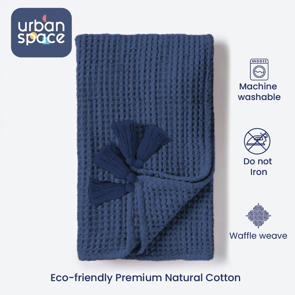 100% Cotton Waffle Throw Blanket, Soft Decorative Throw with Tassels - Navy Blue
