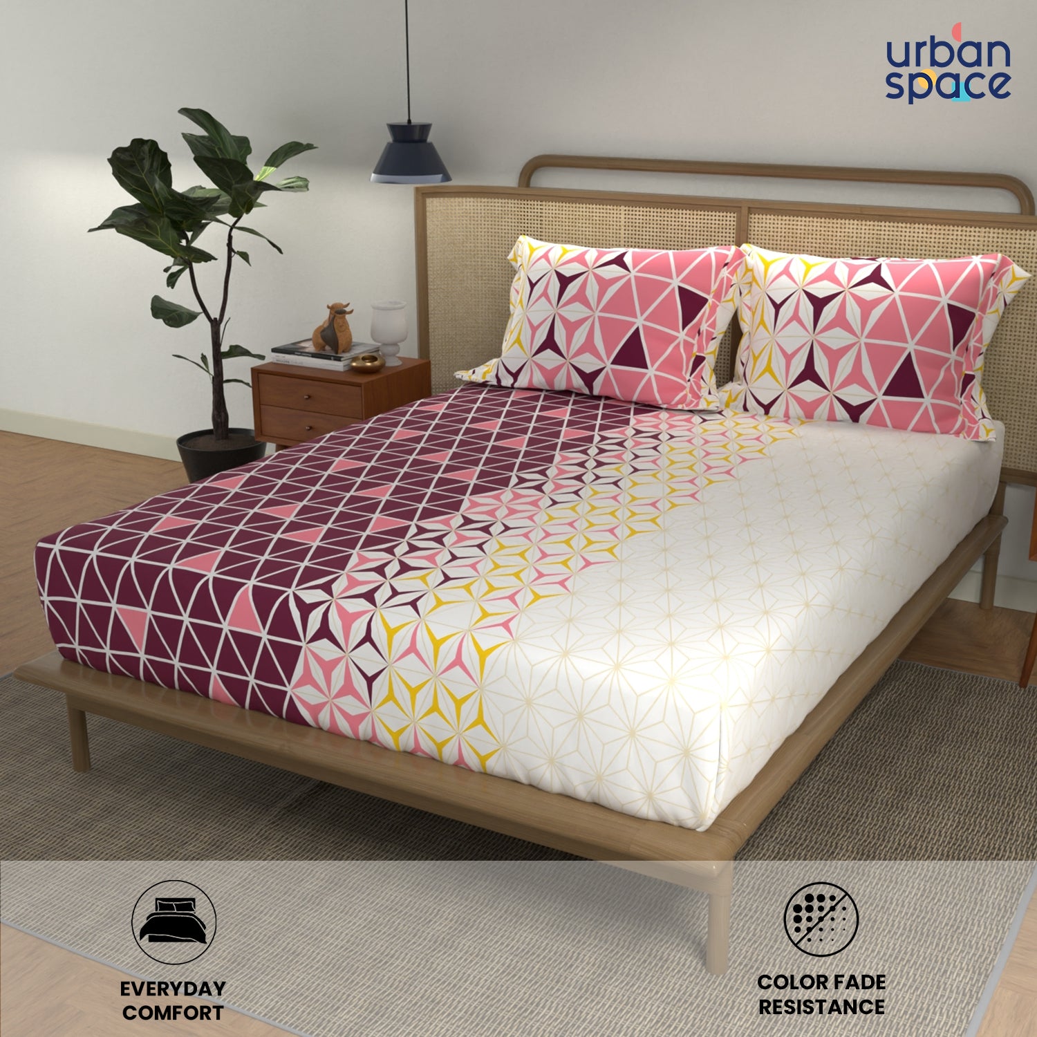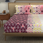 Divine Collection - Cotton Bedsheet With 2 Pillow Covers, Geometric Maroon