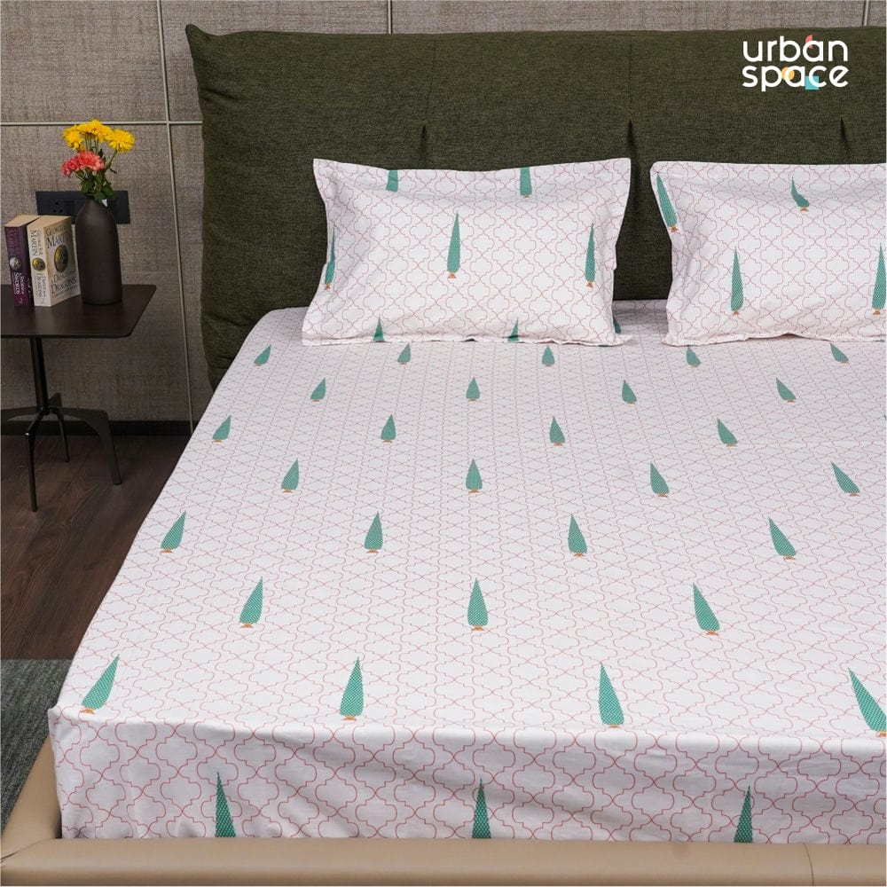 Fitted King Size Cotton Bedsheet - Pinewood- Peach Green