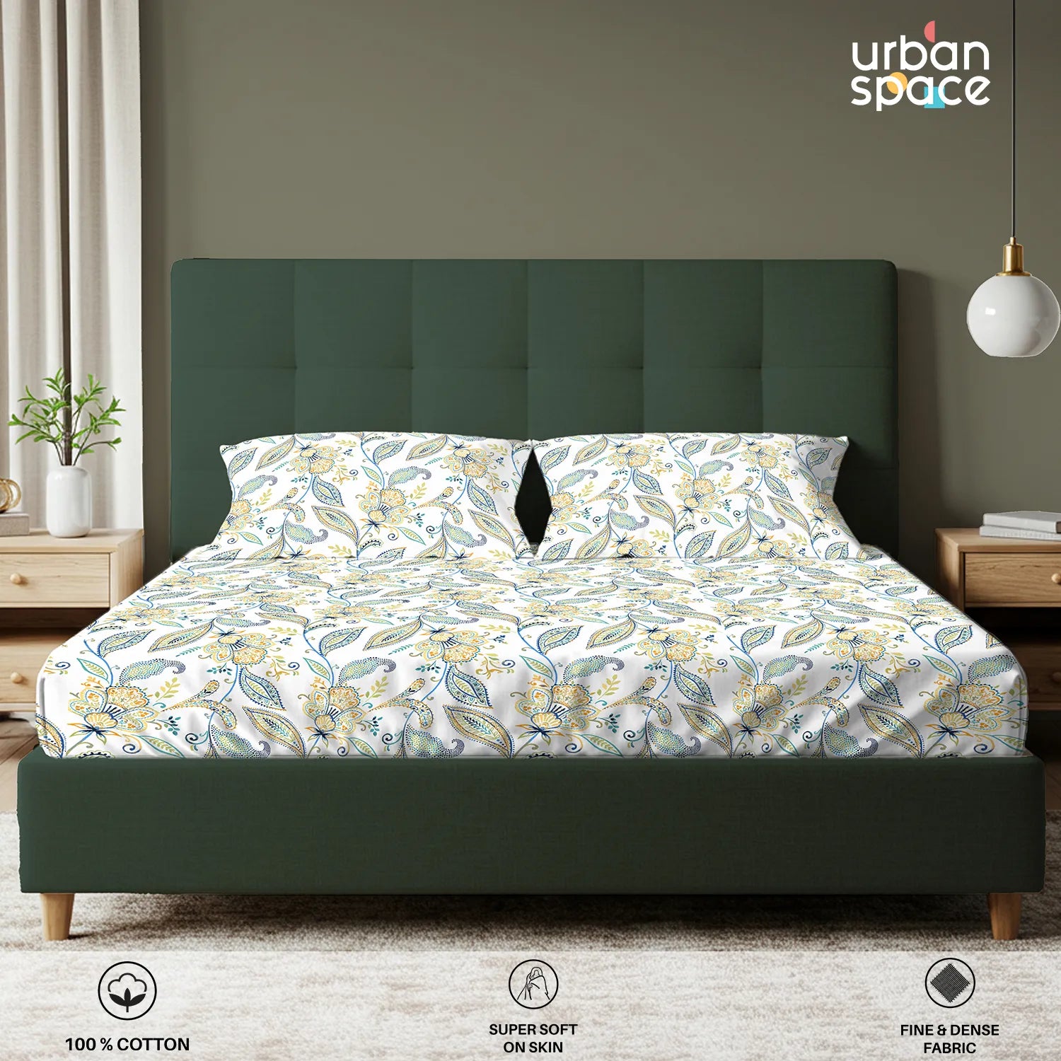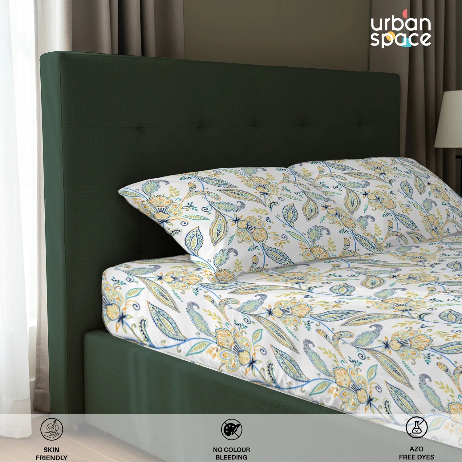 • Fabric & Quality: Made from 100% fine and breathable cotton with a 200 thread count, this bedsheet offers a soft and smooth hand feel for all-season comfort. Crafted using AZO-free colours for safe everyday use and finished with a neat four-sided hem for improved durability and shape retention.