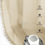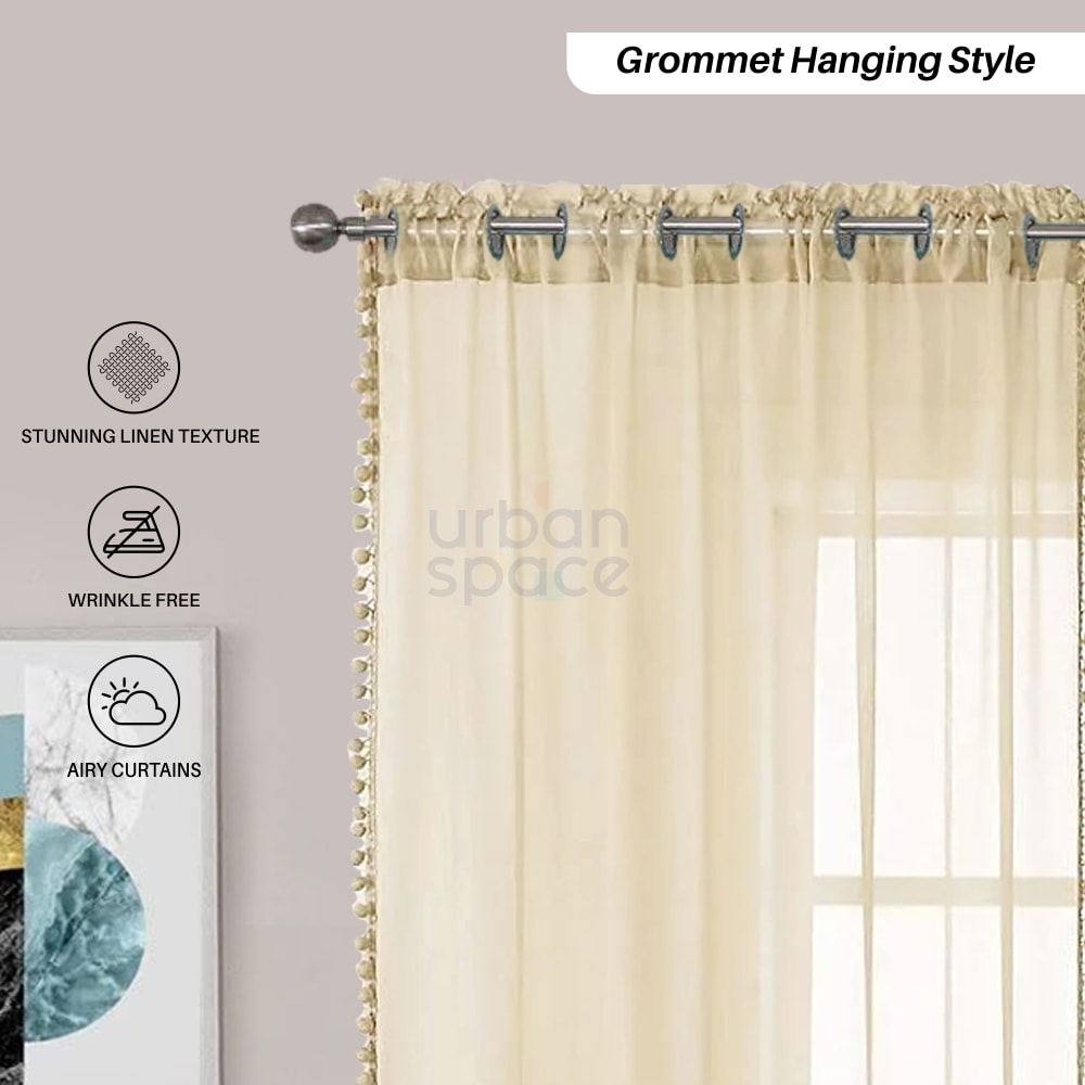 Sheer Curtain for Living Room with linen texture, Net Curtain for balcony, Pack of 2 Curtains - Taupe with pom pom