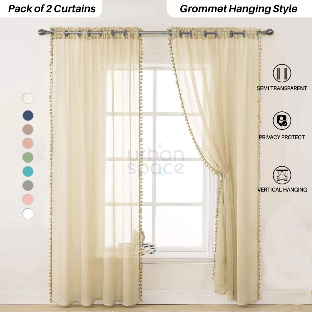 Bring a relaxed, breezy look to your space with sheer curtains featuring pom-pom attachments that add softness, lightness, and a playful accent to everyday interiors.