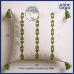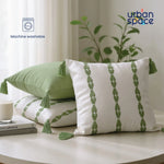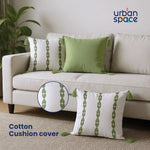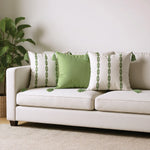 Embroidered Cotton Cushion Cover, for Sofa, Bedroom, Living Room - Set of 3 - Aura Sage Green