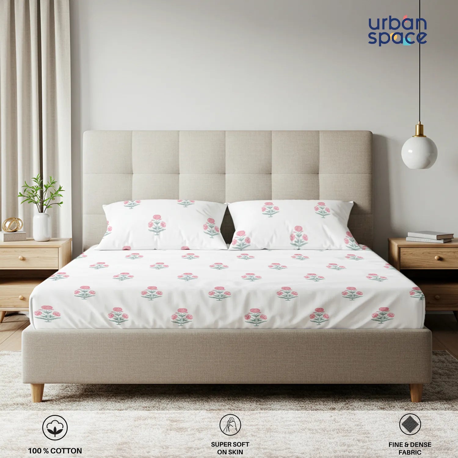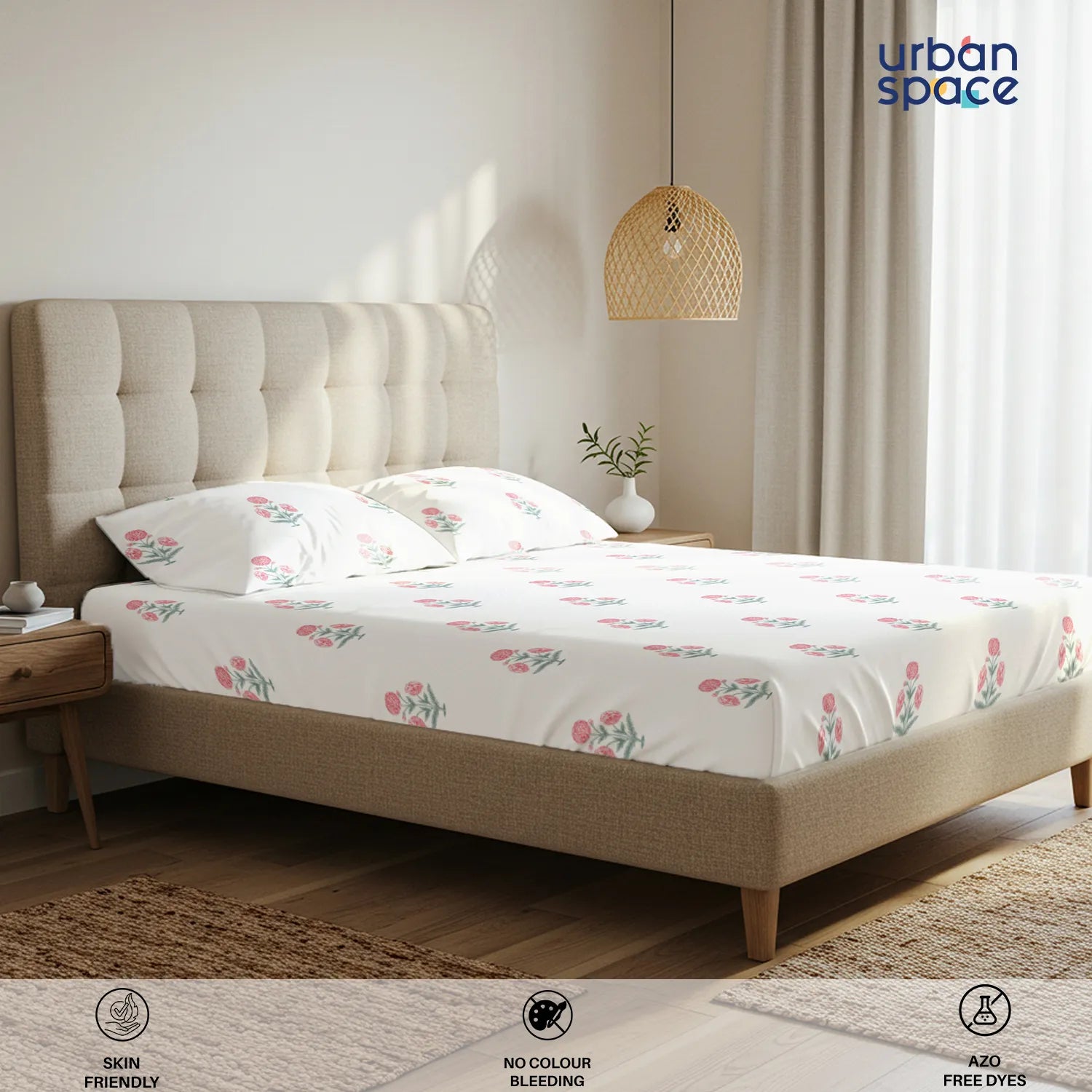 - Fabric & Quality: Made from 100% fine and breathable cotton with a 200 thread count, this bedsheet offers a soft and smooth hand feel for all-season comfort. Crafted using AZO-free colours for safe everyday use and finished with a neat four-sided hem for improved durability and shape retention.