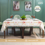 100% Cotton Dining Table Cover, Printed Cotton Table Cloth with Boho Tassels - Floral Ripples Red