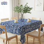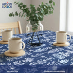 100% Printed Cotton Dining Table Cover for 4 & 6 Seater - Twigs Indigo