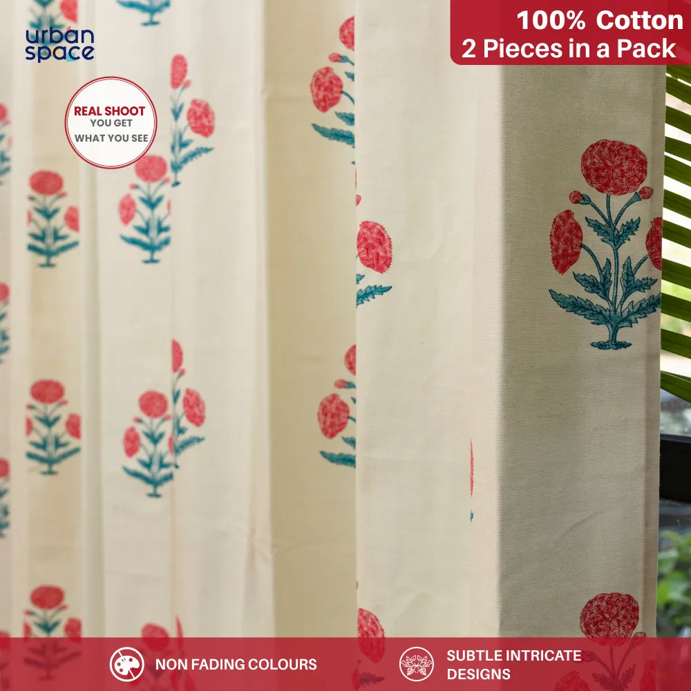 100% Cotton Curtains for Living Room, Bedroom curtains - Pack of 2 curtains, Sunflower - Pink