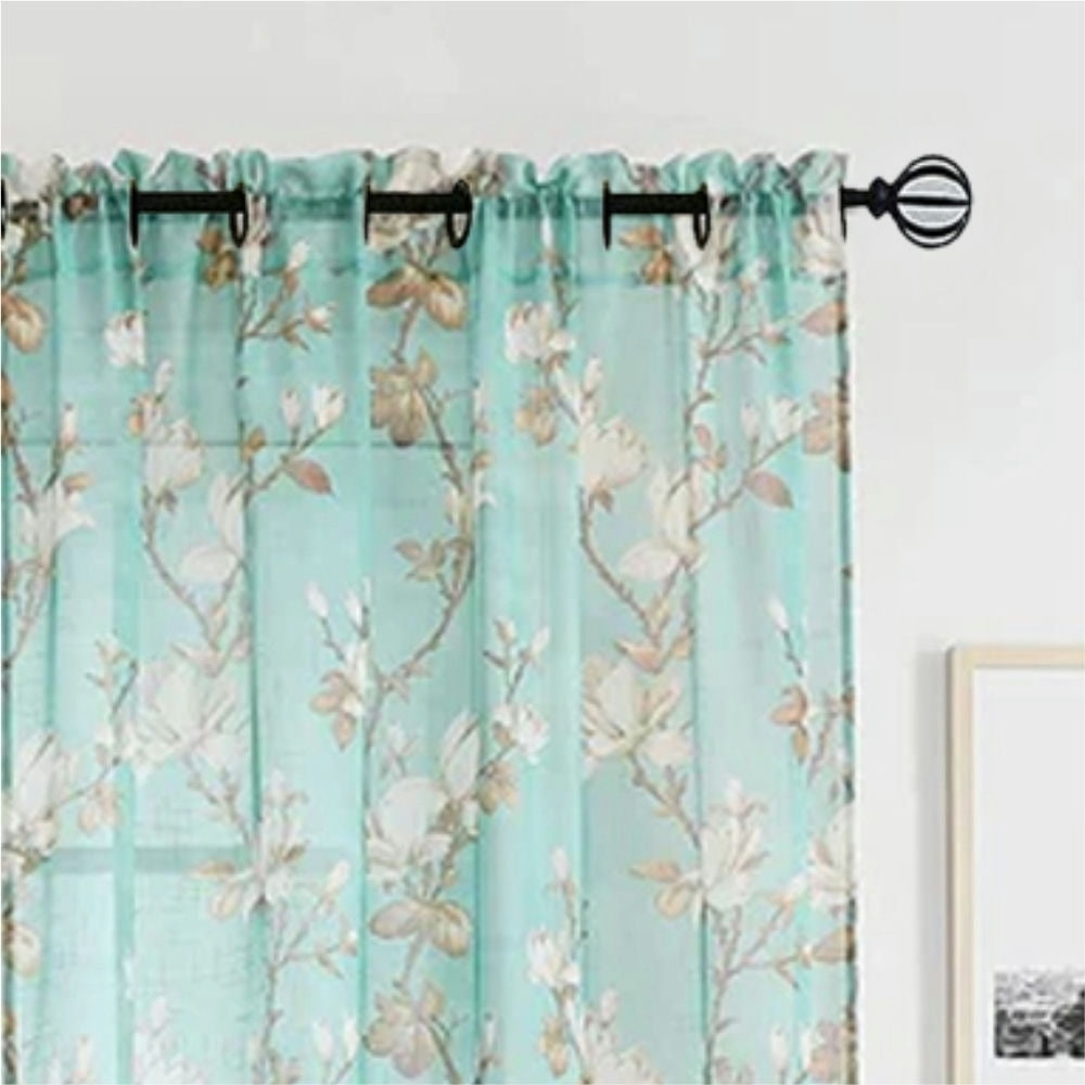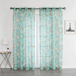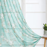 Digital Printed, Linen textured Sheer Curtain for Living Room , Curtain for Window/Door, Pack of 2 Curtains - Tulip Green