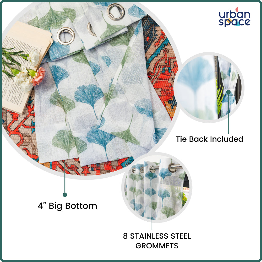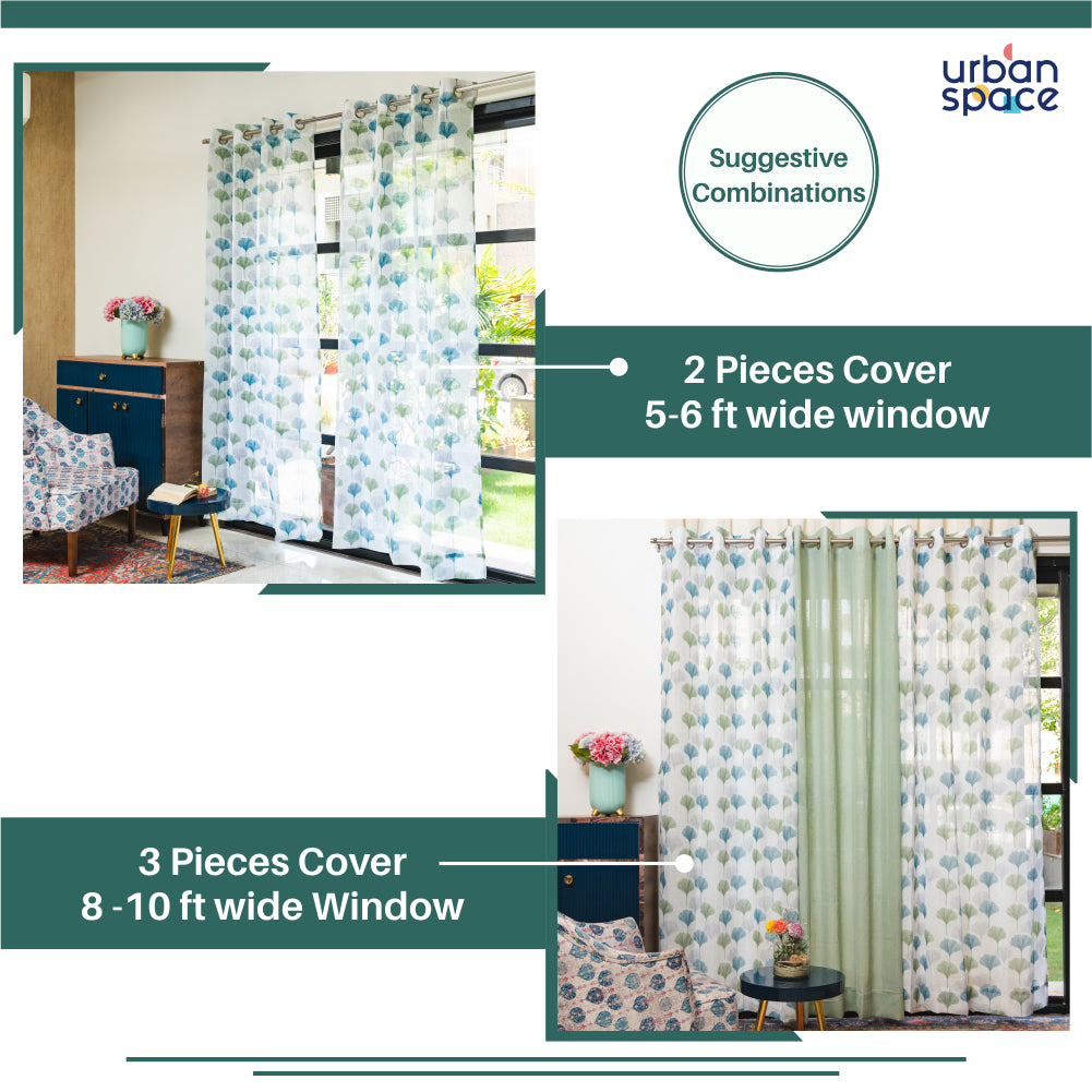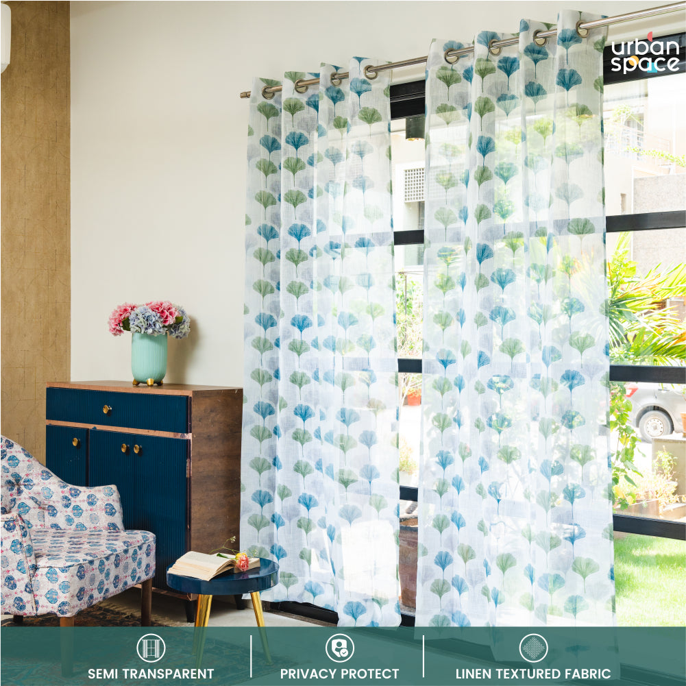 Digital Printed, Linen textured Sheer Curtain for Living Room , Curtain for Window/Door, Pack of 2 Curtains - Mushroom Green