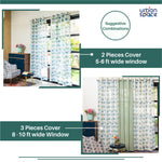 Pack Contains: Each pack includes 2 curtain panels, with each panel measuring 45–46" inches (3.75 feet) in width. The set comfortably covers a 4–5 ft wide window/door with elegant pleats. Standard length options are 5 ft, 7 ft, and 8 ft. Lengths and hanging patterns can also be customized as per your requirements (explore or connect with customer care).
