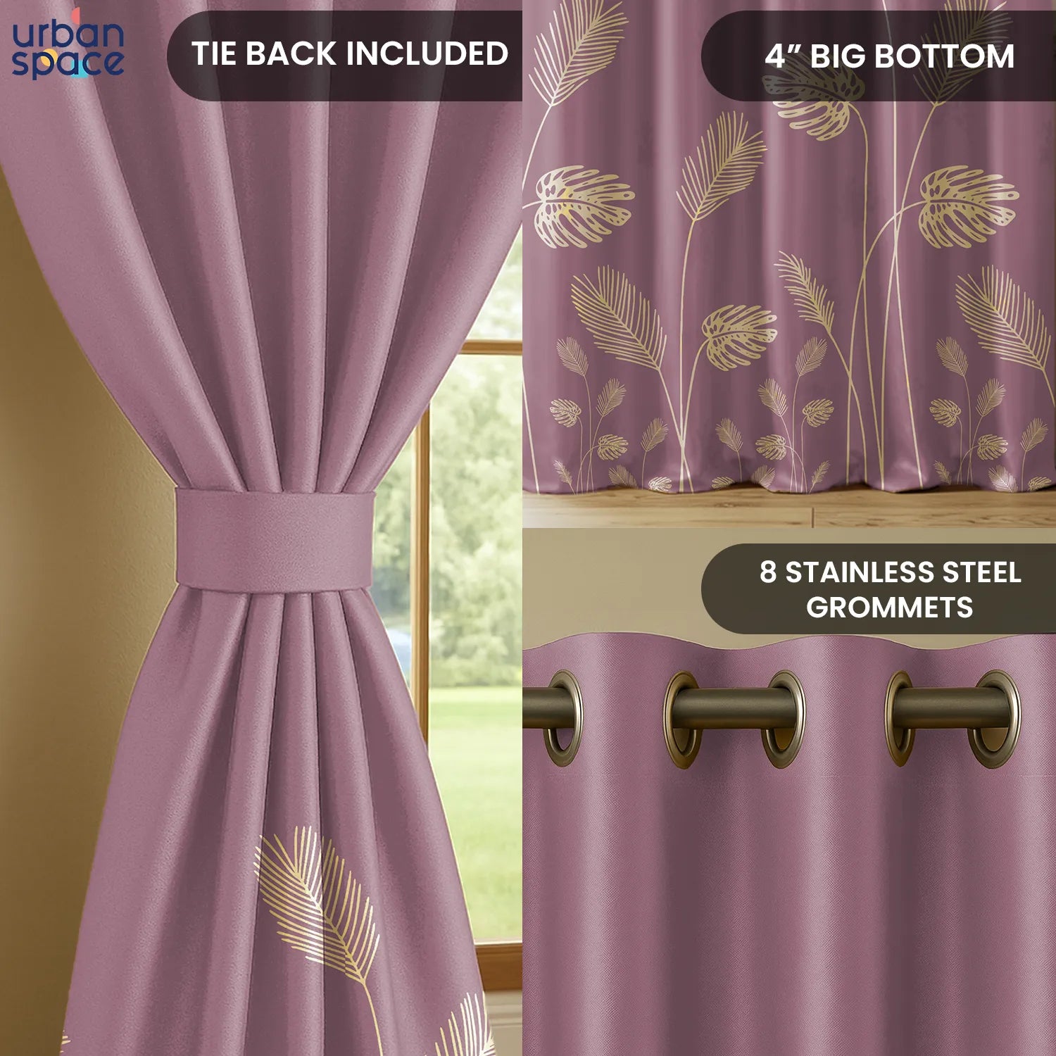 Metallic Foil Printed 100% Blackout Curtains - Pack of 1 Curtain - Aurika Mauve