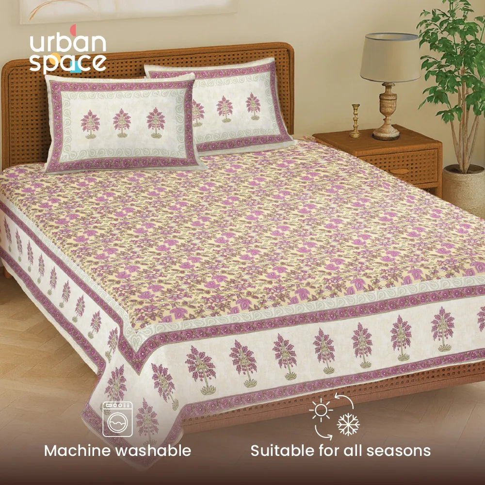 • Elegant 4-Side Border Design: Features detailed printed borders on all four sides that frame the bed beautifully and create a polished, styled appearance along with matching pillow covers.