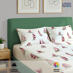Divine Collection - Cotton Bedsheet With 2 Pillow Covers, Ocean Boats Maroon