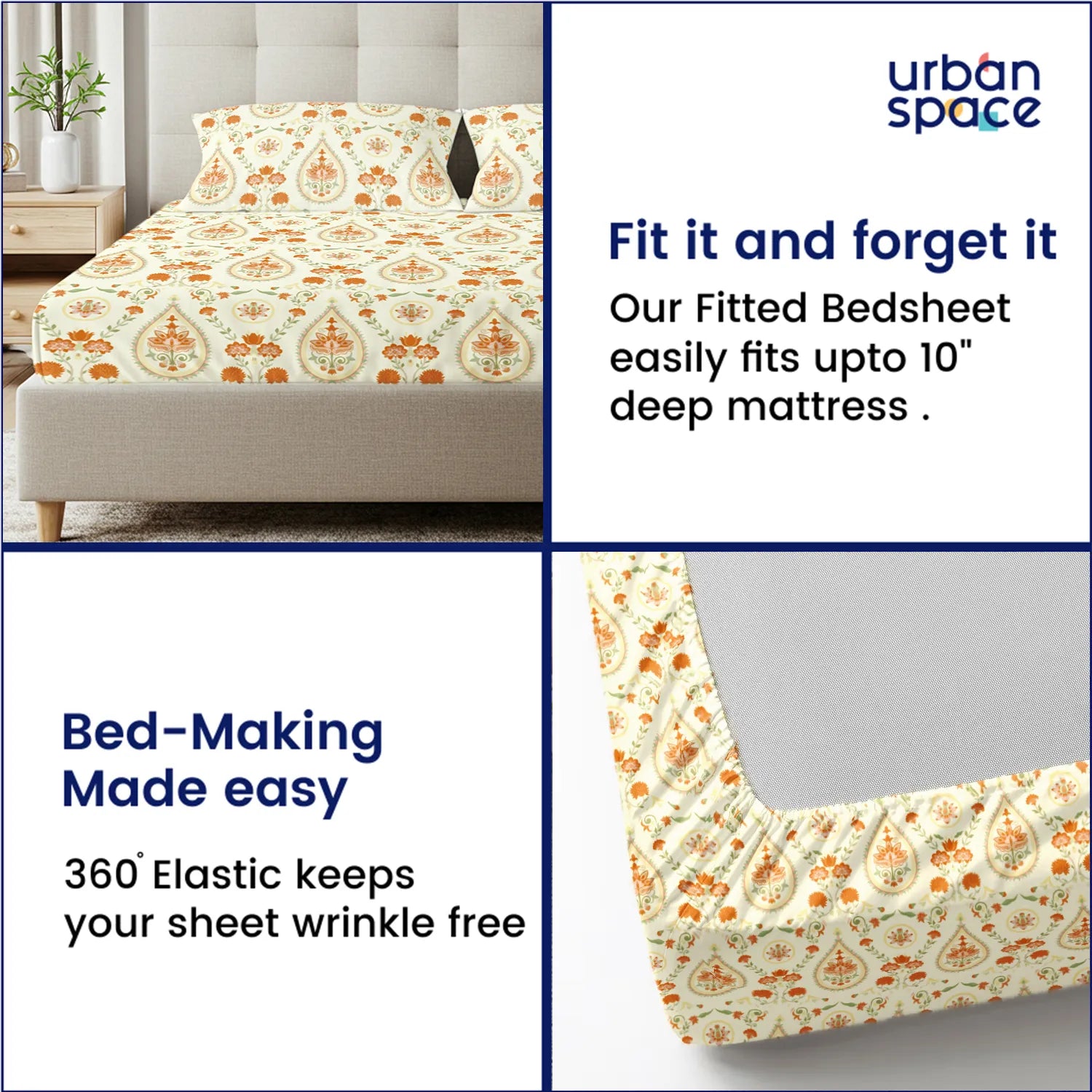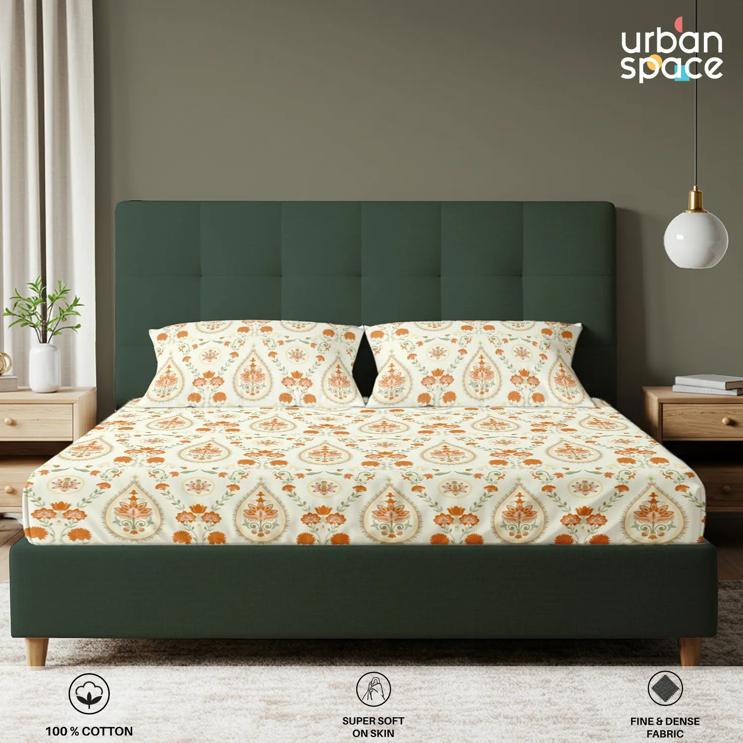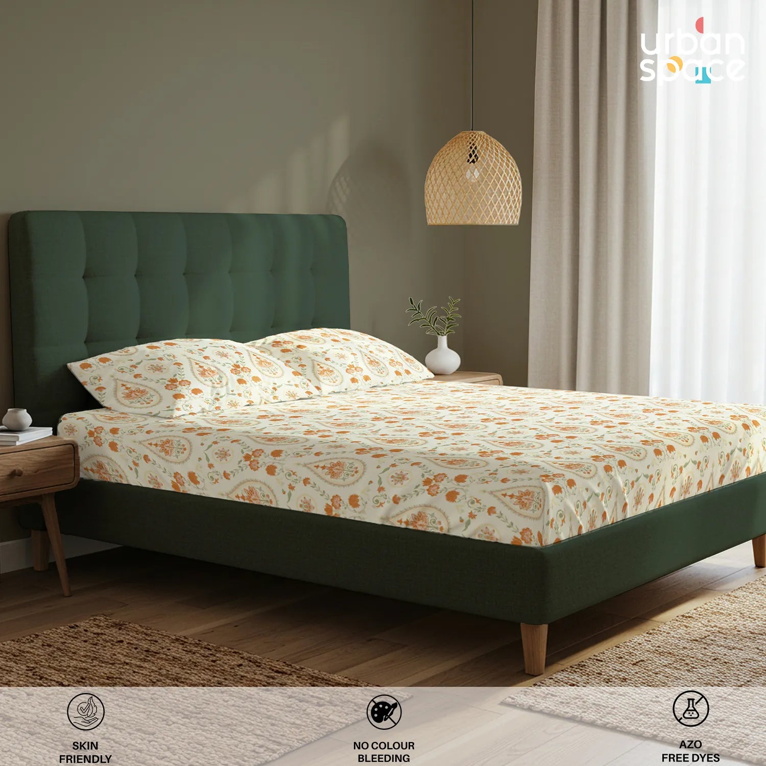 • Fabric & Quality: Made from 100% fine and breathable cotton with a 200 thread count, this bedsheet offers a soft and smooth hand feel for all-season comfort. Crafted using AZO-free colours for safe everyday use and finished with a neat four-sided hem for improved durability and shape retention.