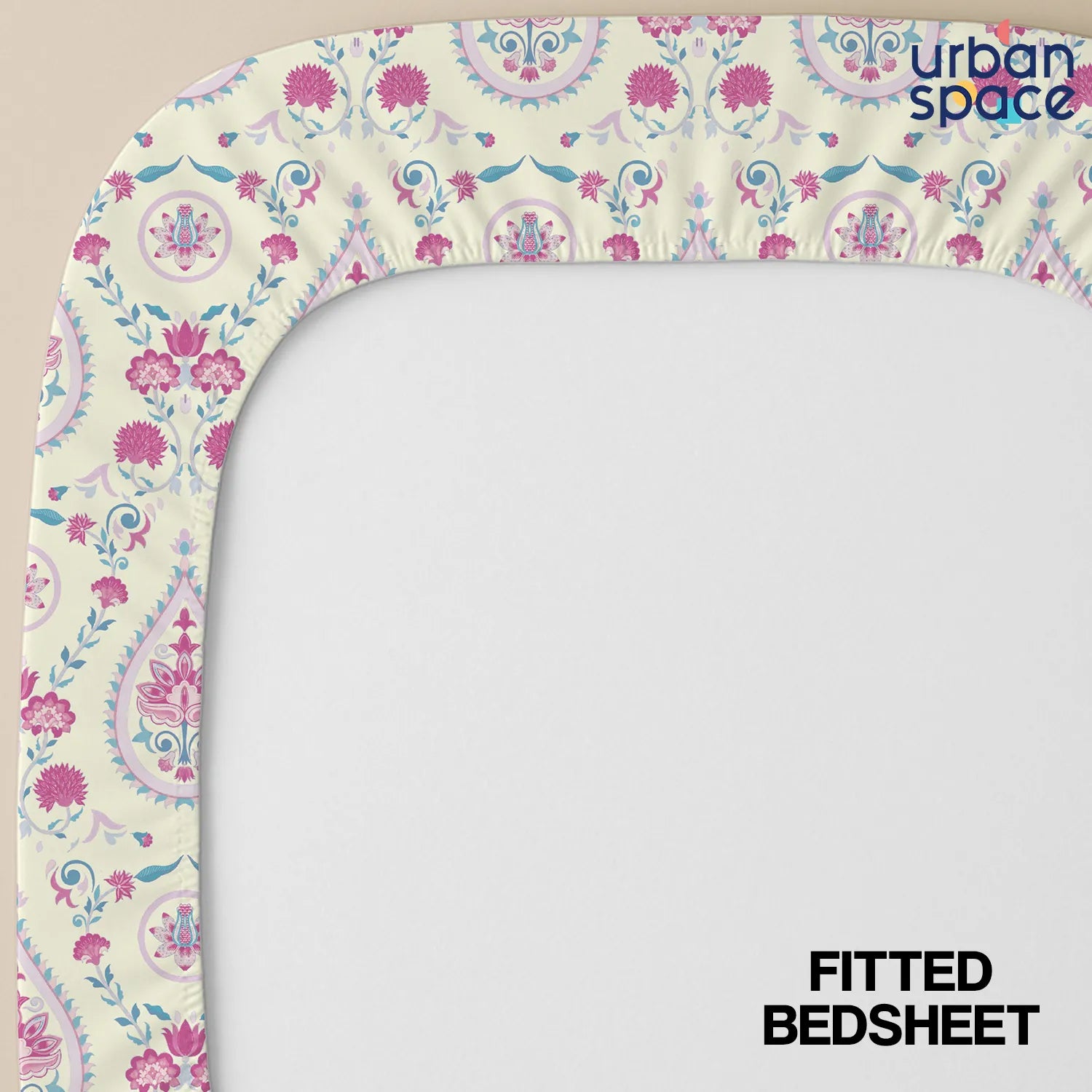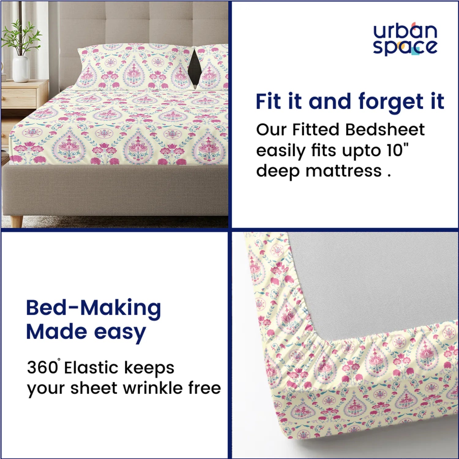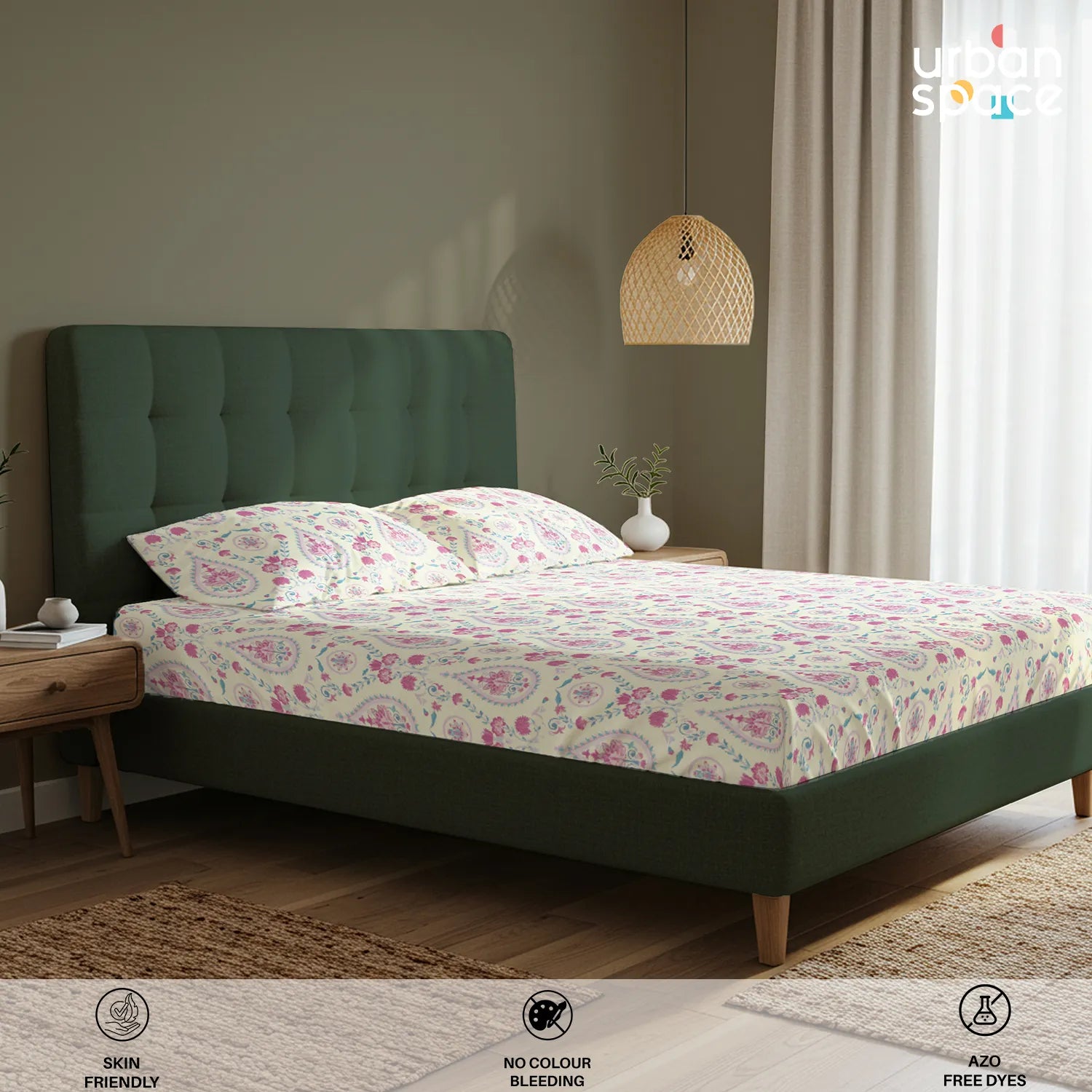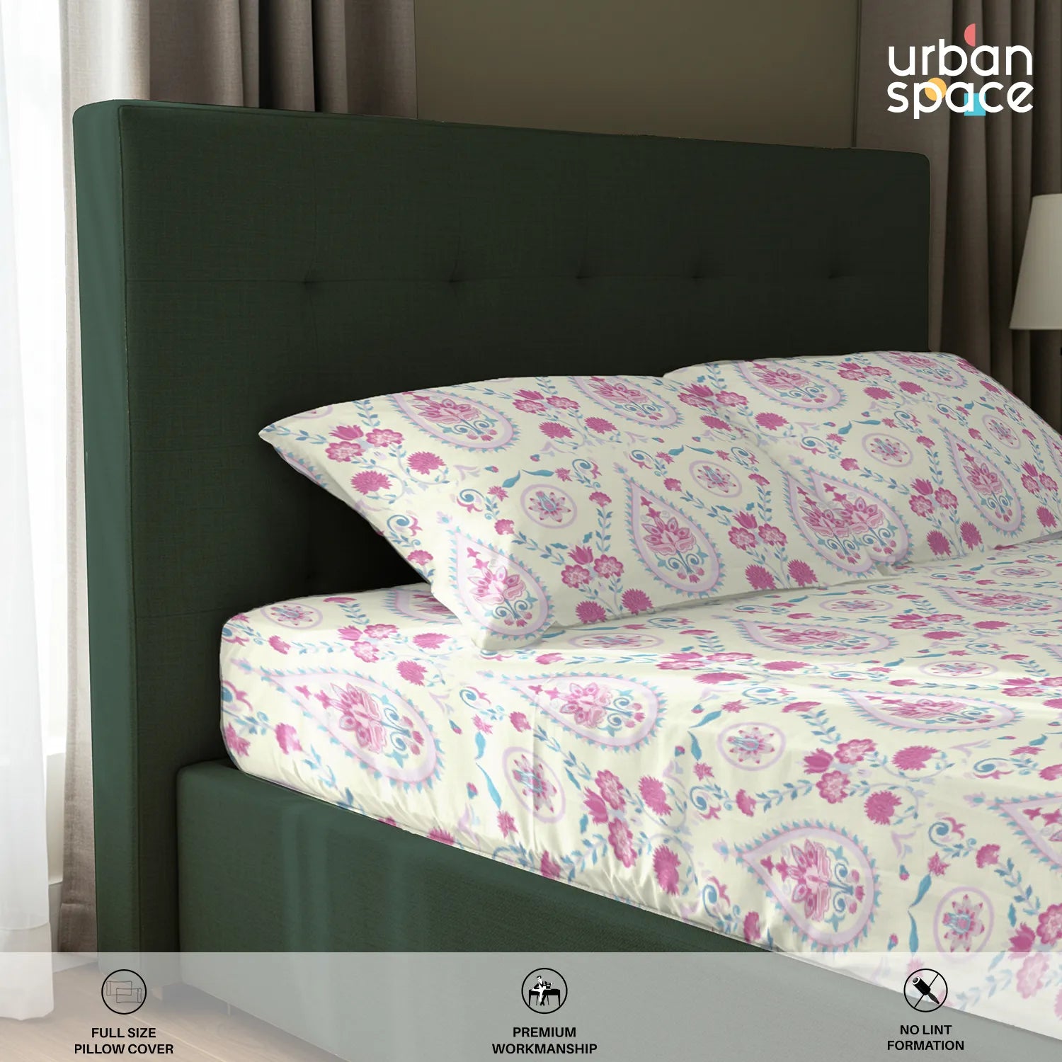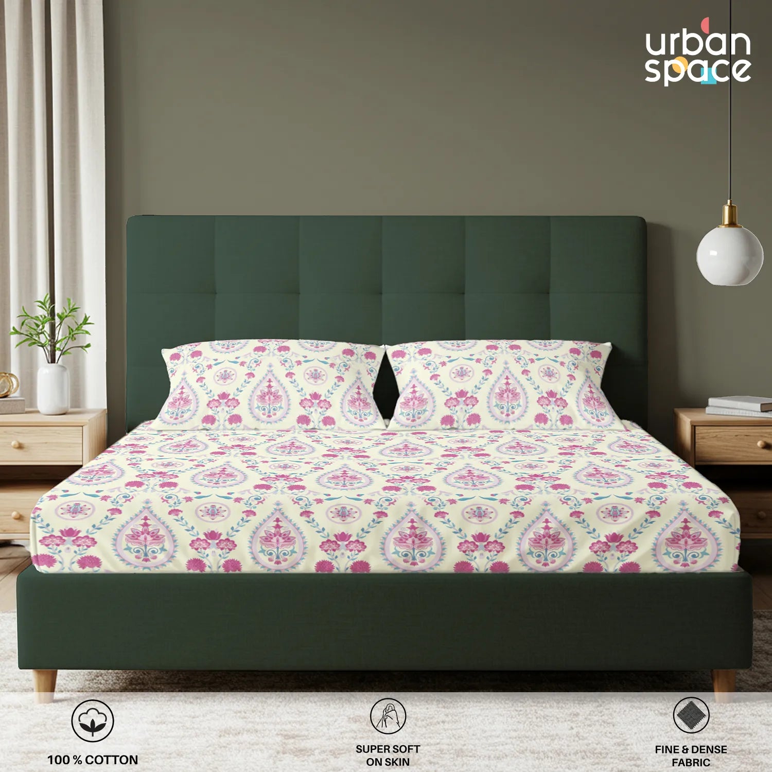 Serene 200 TC 100% Cotton Bedsheet with Pillow Covers - Persian Courtyard Pink