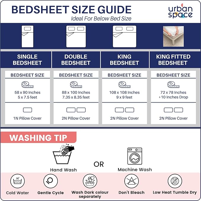 • Fabric & Quality: Made from 100% fine and breathable cotton with a 200 thread count, this bedsheet offers a soft and smooth hand feel for all-season comfort. Crafted using AZO-free colours for safe everyday use and finished with a neat four-sided hem for improved durability and shape retention.