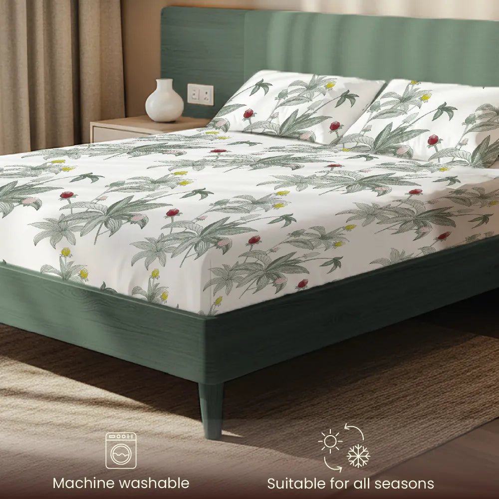 200 TC Glaced Cotton Microfiber Bedsheet with Pillow Covers - Leaf Dreams