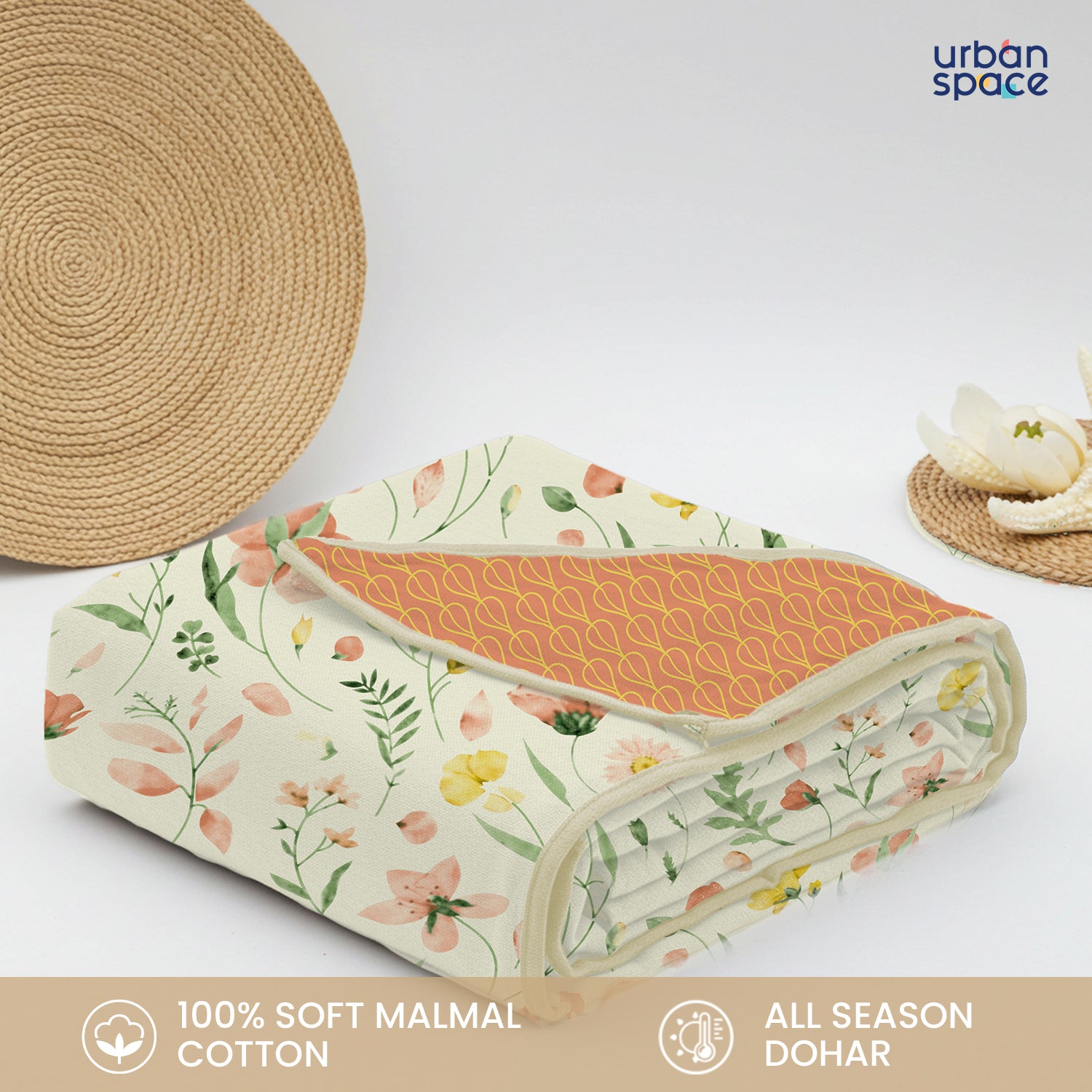 100% Malmal Cotton Blanket, Dohar, Quilt for AC and Light Winters - Meadows Buttercream
