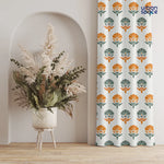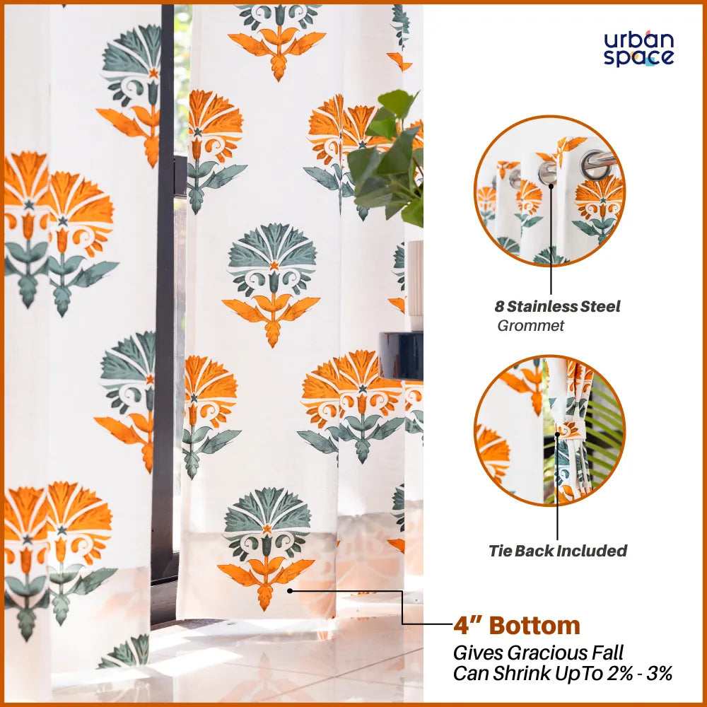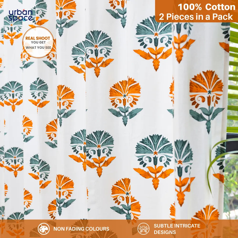 100% Cotton Curtains for Living Room, Bedroom curtains - Pack of 2 curtains, Owl Orchids - Mango