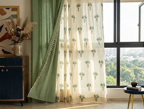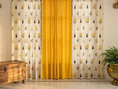• Fabric & Quality: Crafted using 100% natural cotton with a premium 250 GSM construction for the main panels, paired with a lightweight sheer curtain as the center panel for balanced layering. The cotton fabric offers durability, room-darkening performance, and long-term fade resistance, while the sheer panel allows soft daylight to filter through. Together, they create the perfect blend of privacy, breathability, and style.