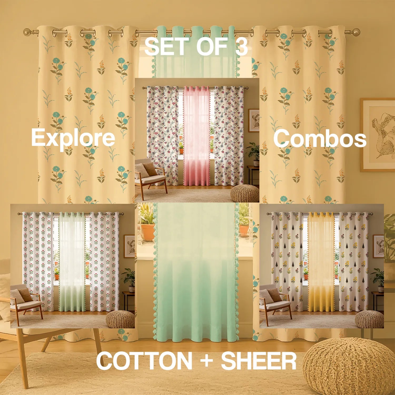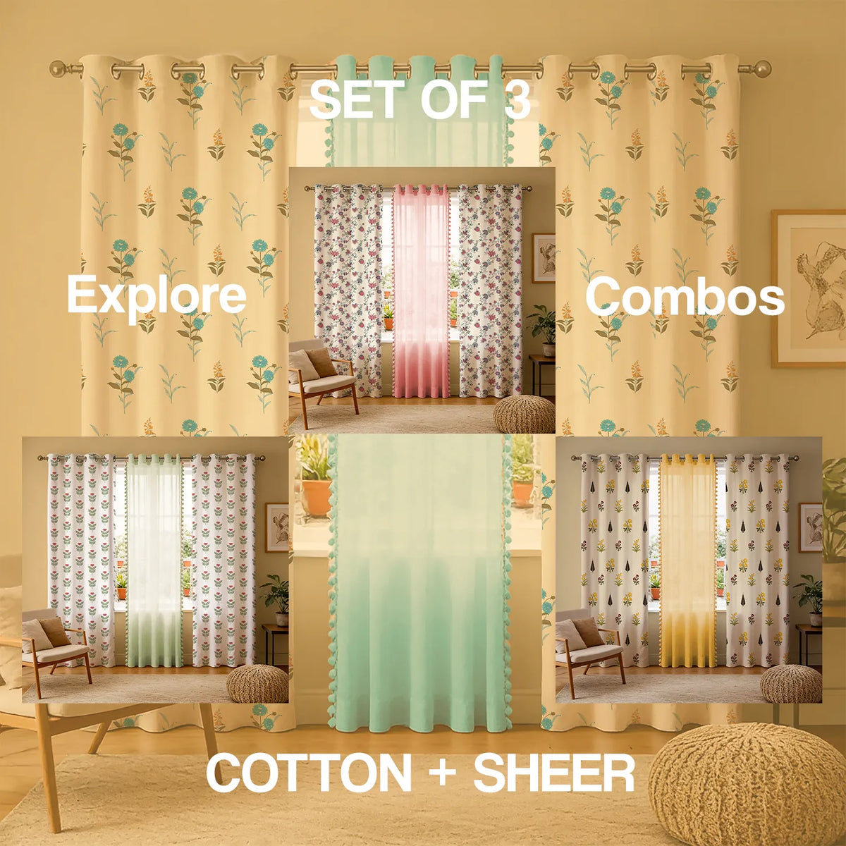 Cotton-Sheer Combo Curtains are thoughtfully curated curtain sets designed to combine the structure of cotton with the softness of sheer in one coordinated set.