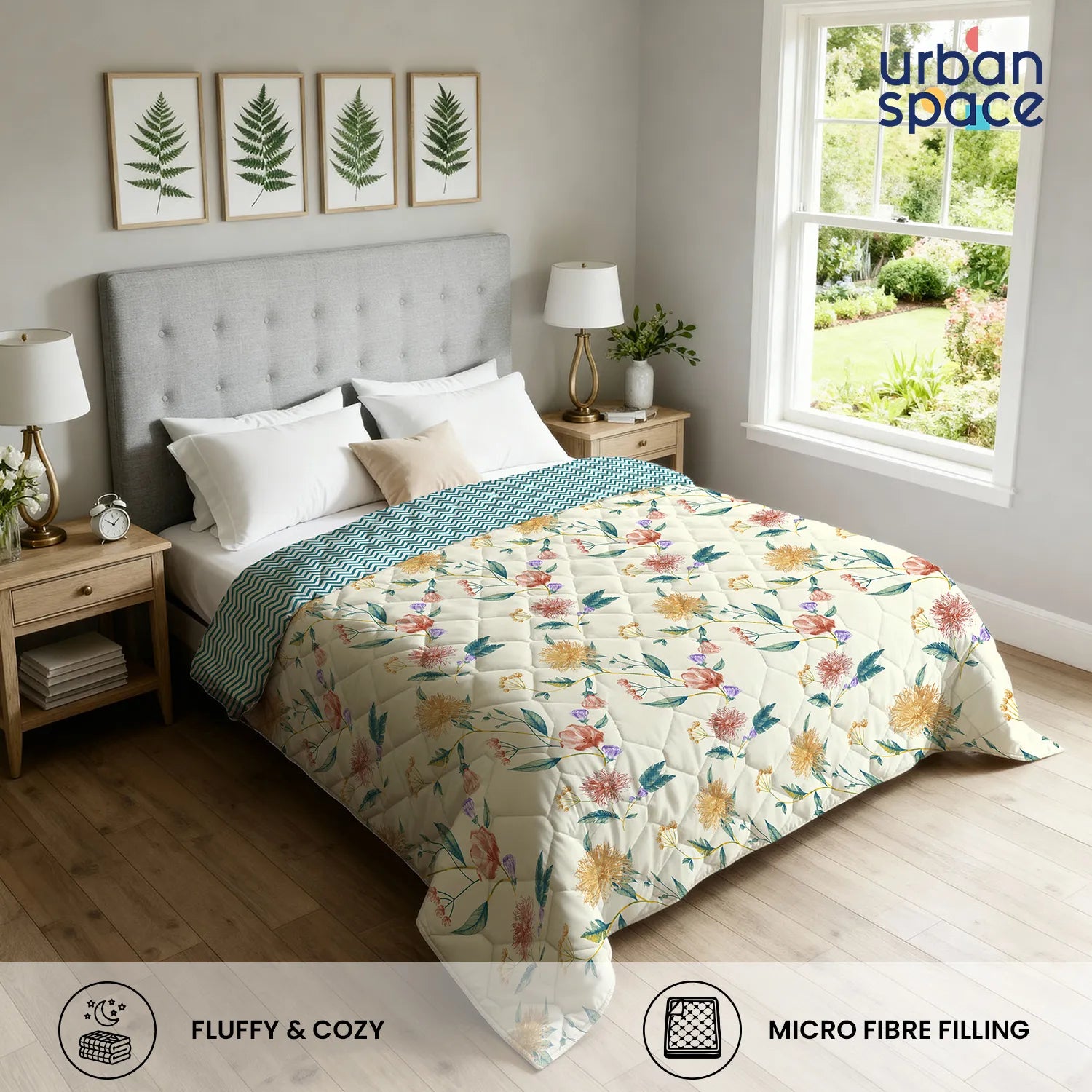- Reversible Design: Features a reversible quilted design with dual-sided prints and colours, allowing you to switch styles effortlessly while maintaining a clean and well-finished bedding look.
