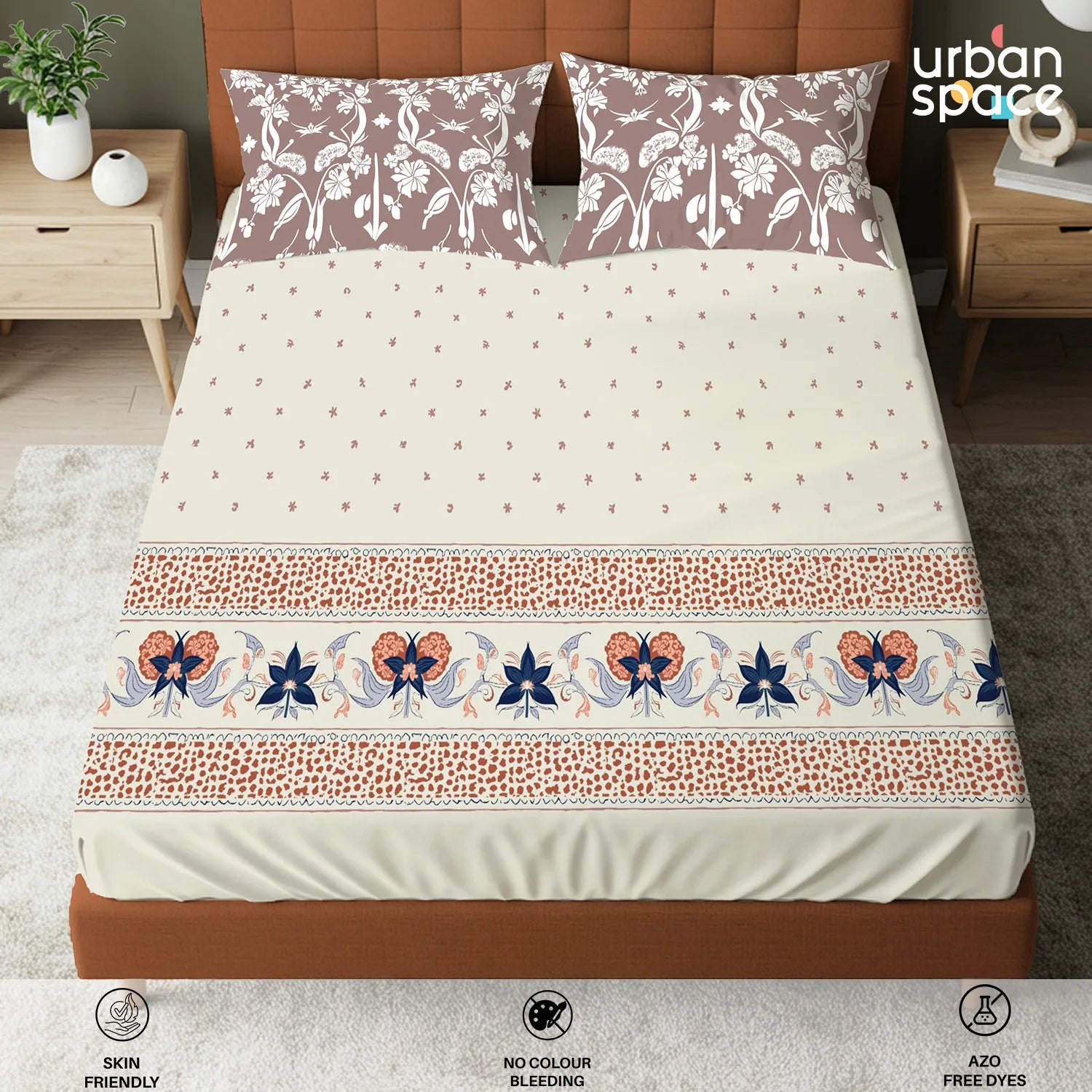 • Fabric & Quality: Made from 100% fine and breathable cotton with a 200 thread count, this bedsheet offers a soft and smooth hand feel for all-season comfort. Crafted using AZO-free colours for safe everyday use and finished with a neat four-sided hem for improved durability and shape retention.