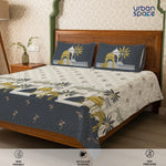 Serene 300 TC 100% Cotton Bedsheet with Pillow Covers, Panel Design - Aangan Grey