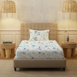 Serene 200 TC 100% Cotton Single Bedsheet with Pillow Covers - Floral Feast Turquoise