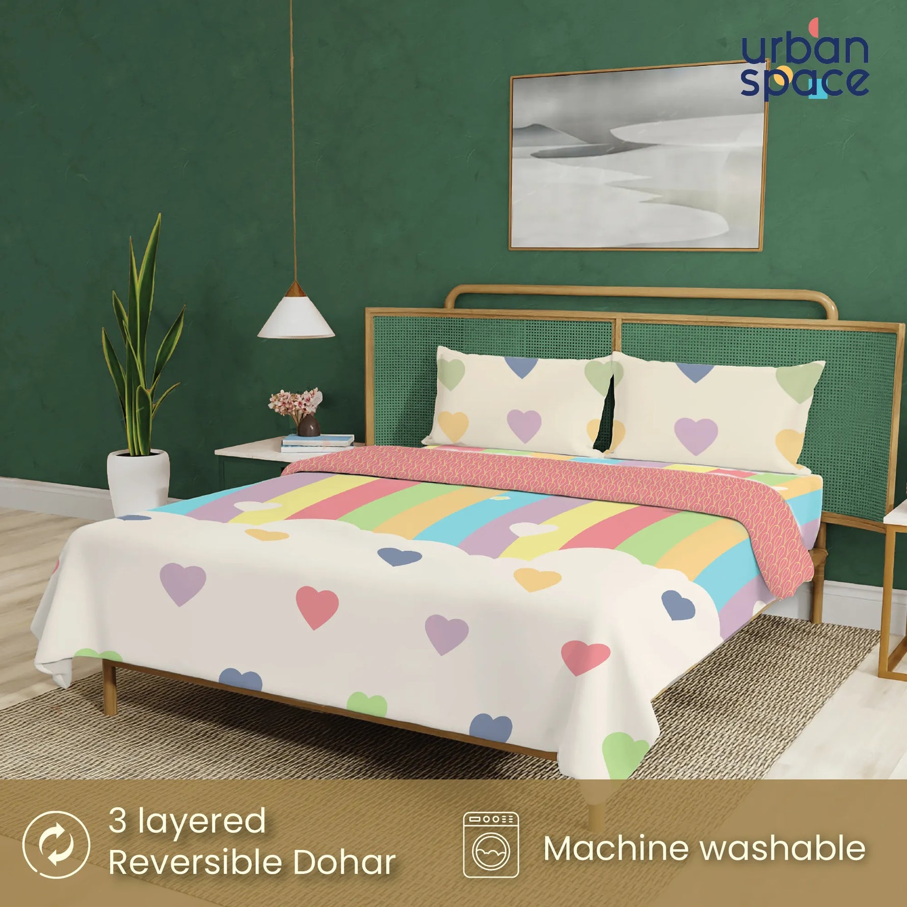 The bedsheet and dohar (or blanket) feature thoughtfully matched prints and pillow covers that complement each other beautifully. The reversible dohar adds a subtle contrast touch, allowing you to refresh the look of your bedroom instantly without the hassle of mixing and matching.