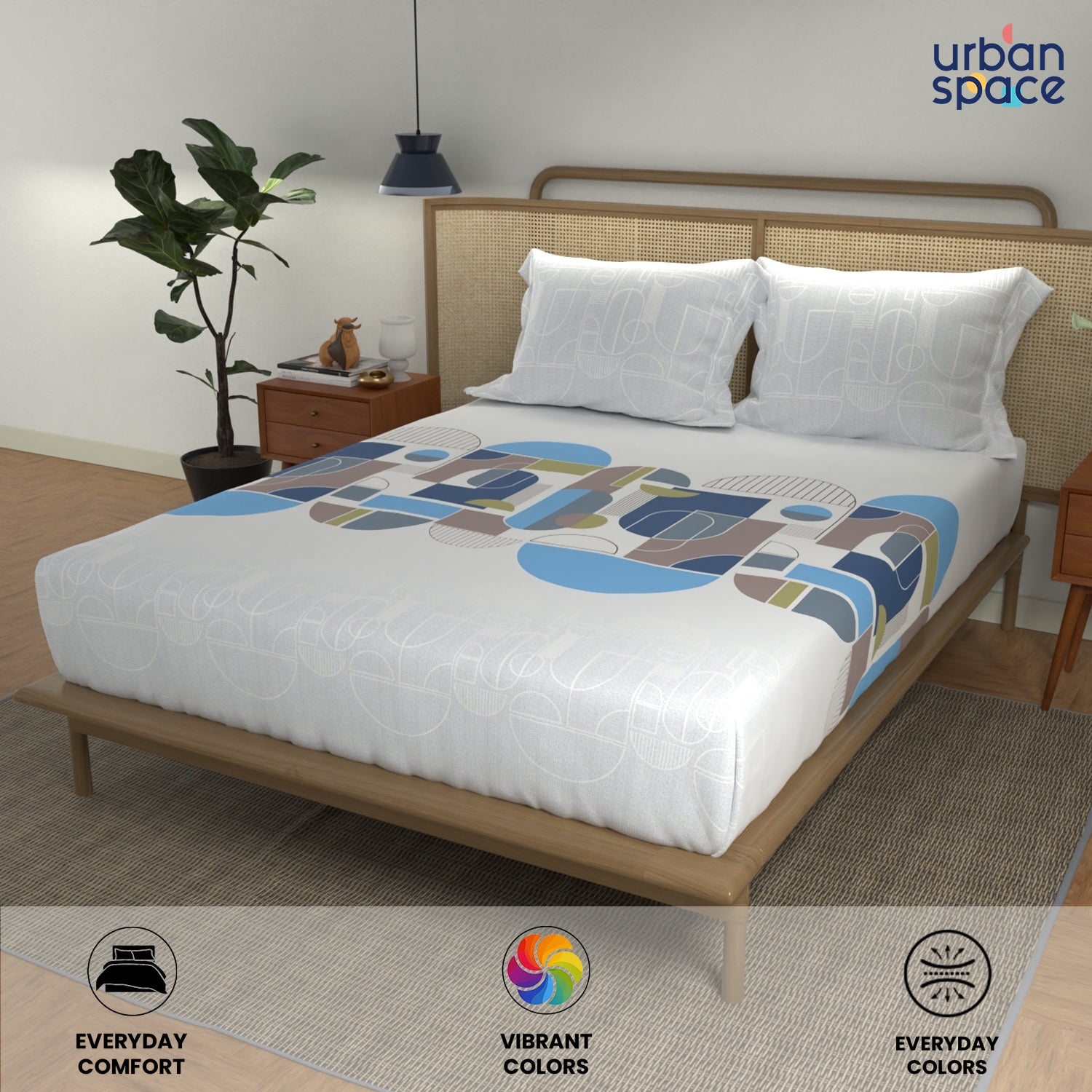 Divine Collection - Cotton Bedsheet With 2 Pillow Covers, Binary Sky Blue