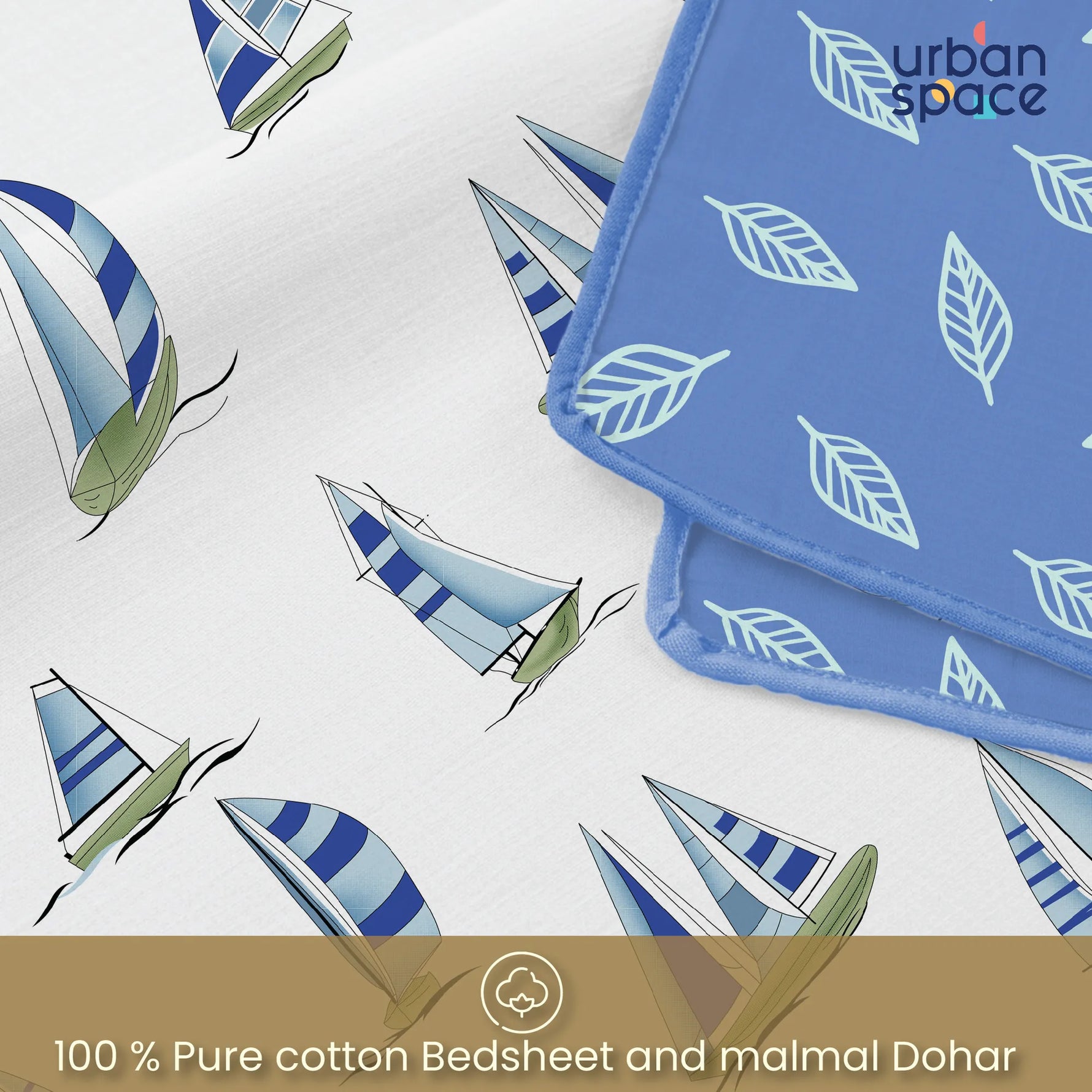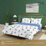 Cotton Bedsheet + AC Cotton Dohar Combo Pack - Ocean Boats Blue