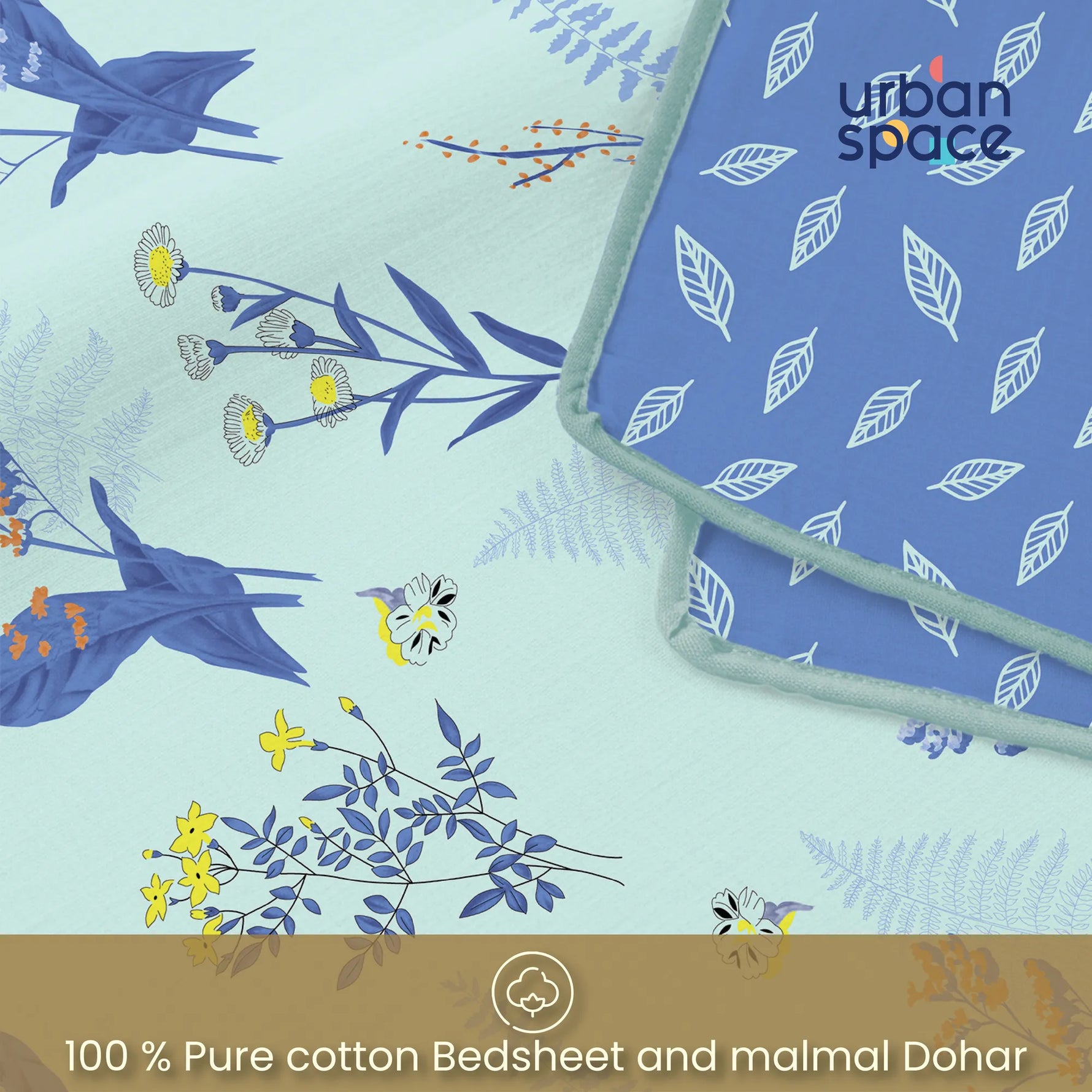 Cotton Bedsheet + AC Cotton Dohar Combo Pack - Whisper Mint Blue