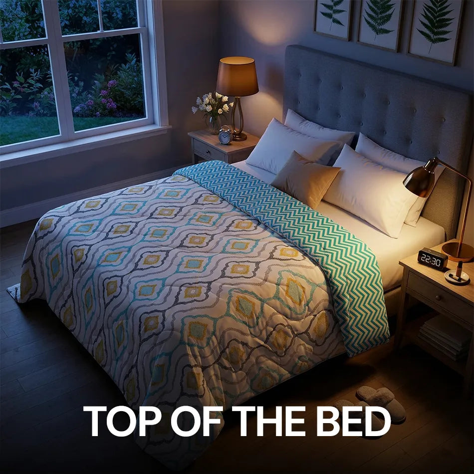 Fluffy & Heavy 200 GSM Microfiber Reversible Quilted Winter Comforters - Teal & Beige