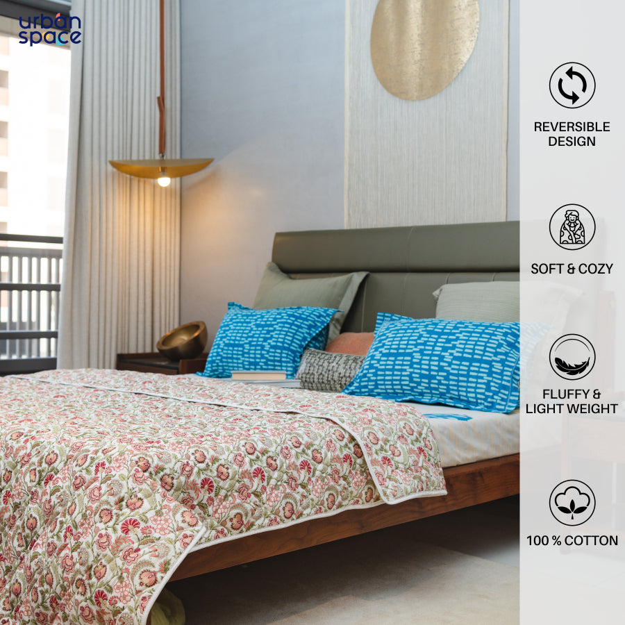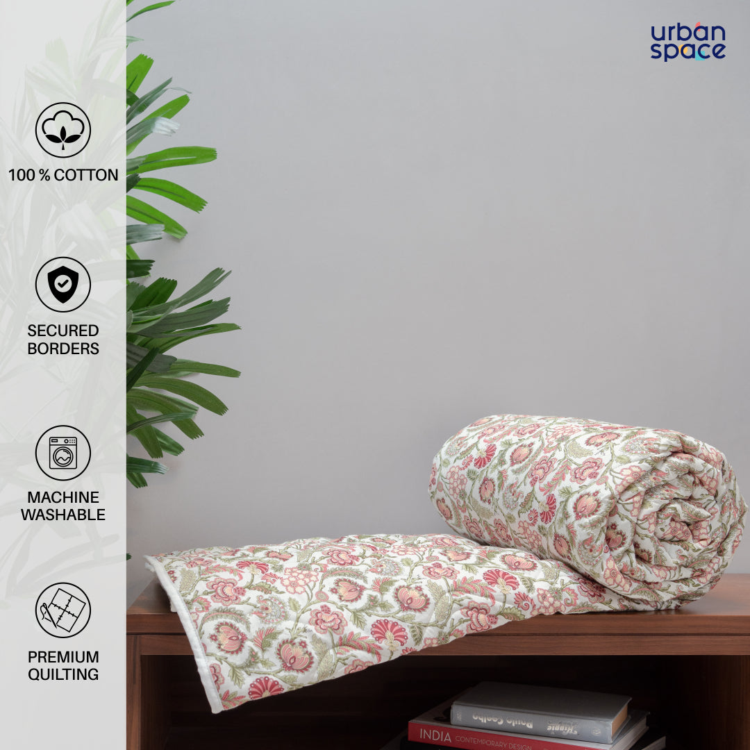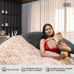 100 % Cotton AC Blankets, 3 layered Cotton Quilts & Dohar for Single / Double Bed - Bougainvillea Pink